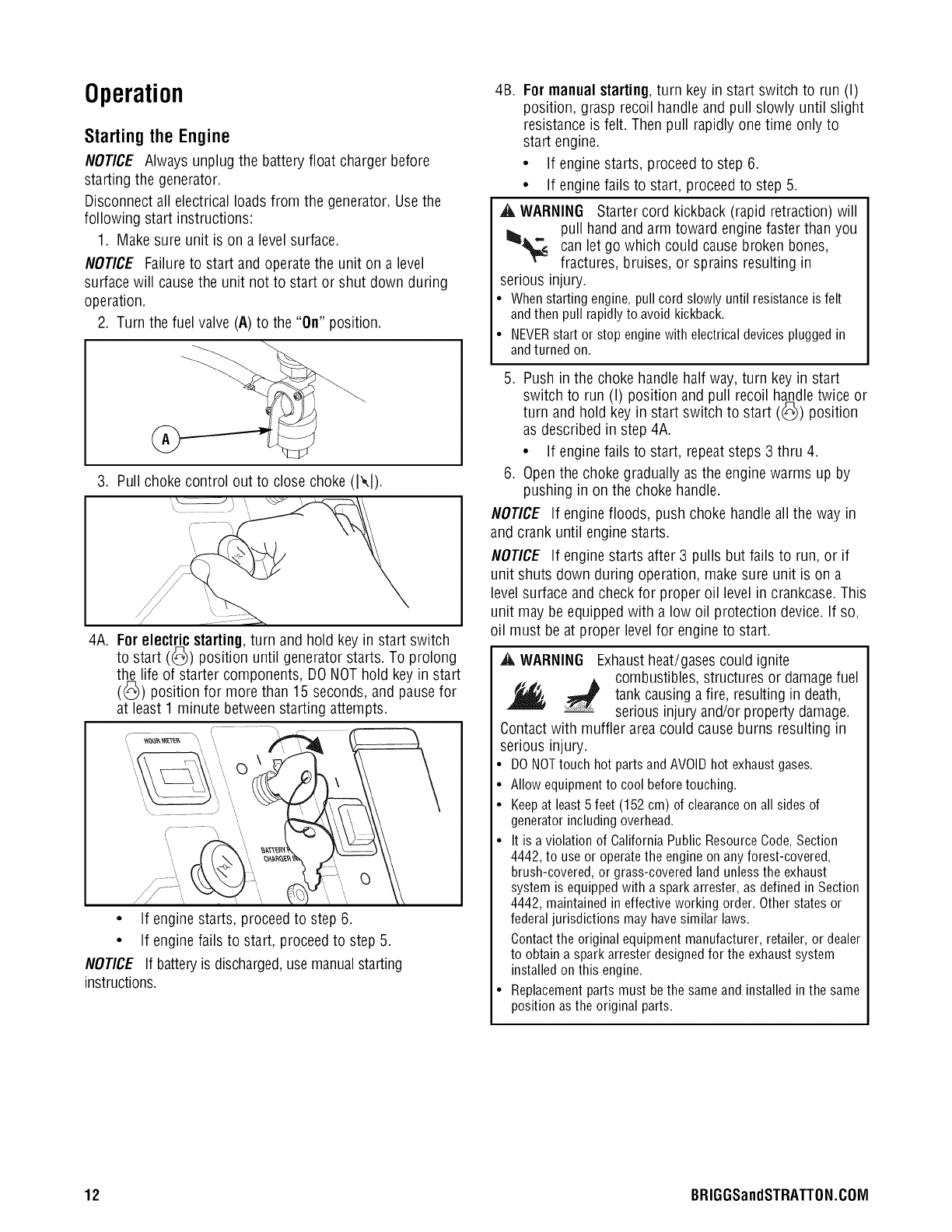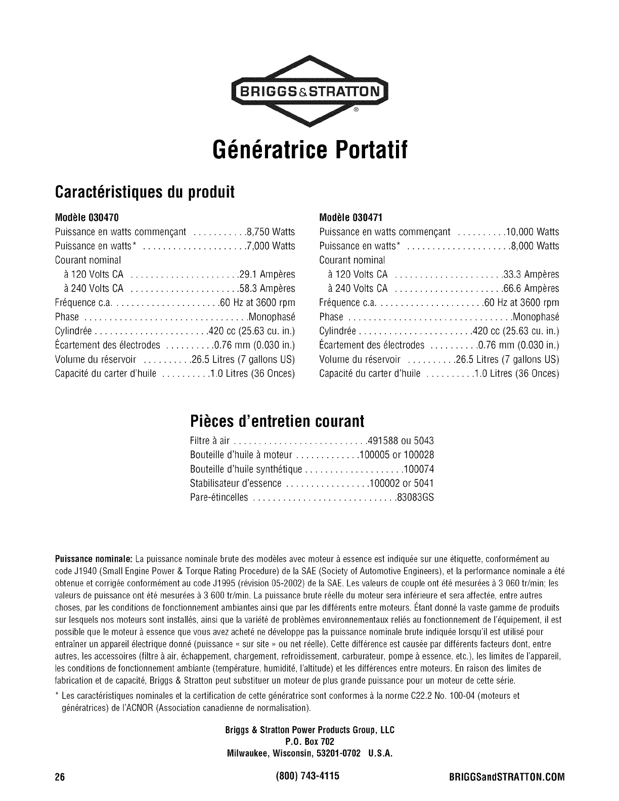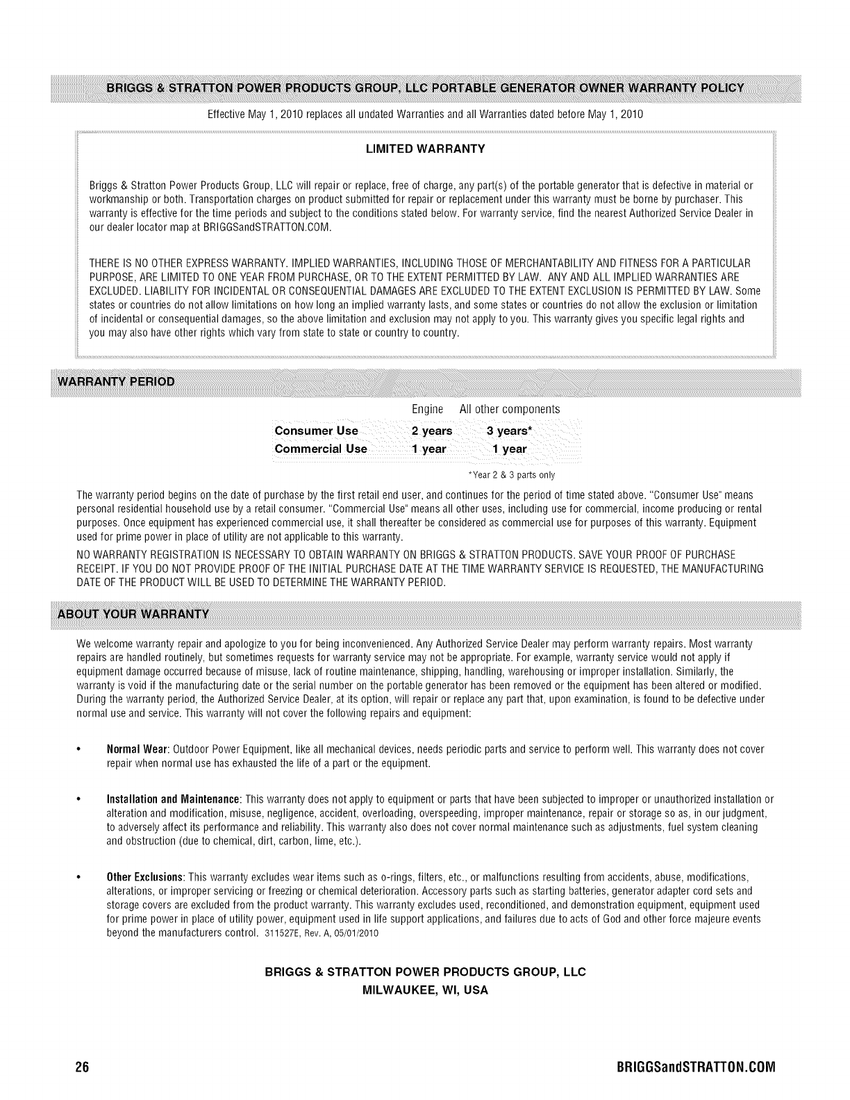 User Manual: Briggs & Stratton 030471-0 030471-0 BRIGGS & STRATTON GENERATOR - Manuals and Guides View the owners manual for your BRIGGS & STRATTON GENERATOR #0304710. Home:Tool Parts:Briggs&Stratton Parts:Briggs&Stratton GENERATOR Manual