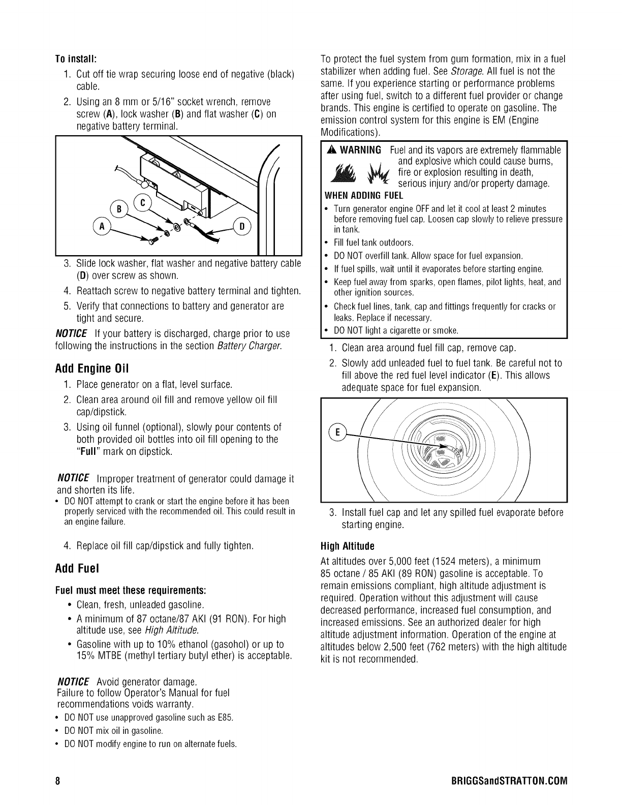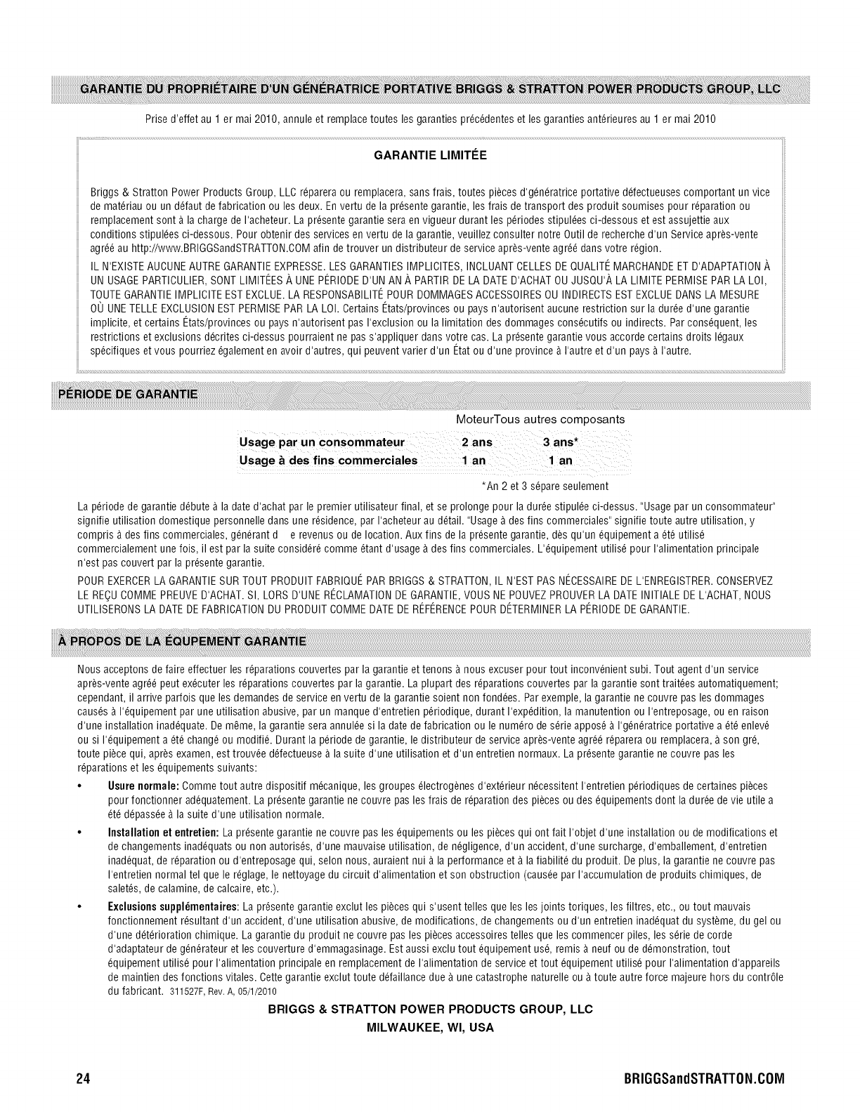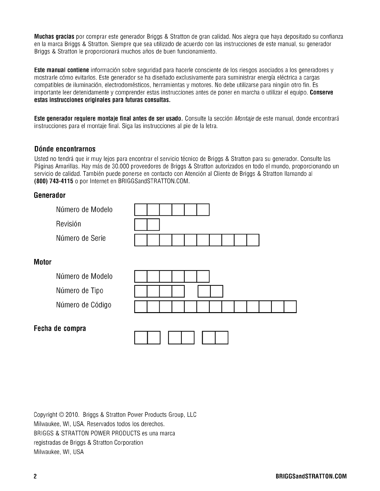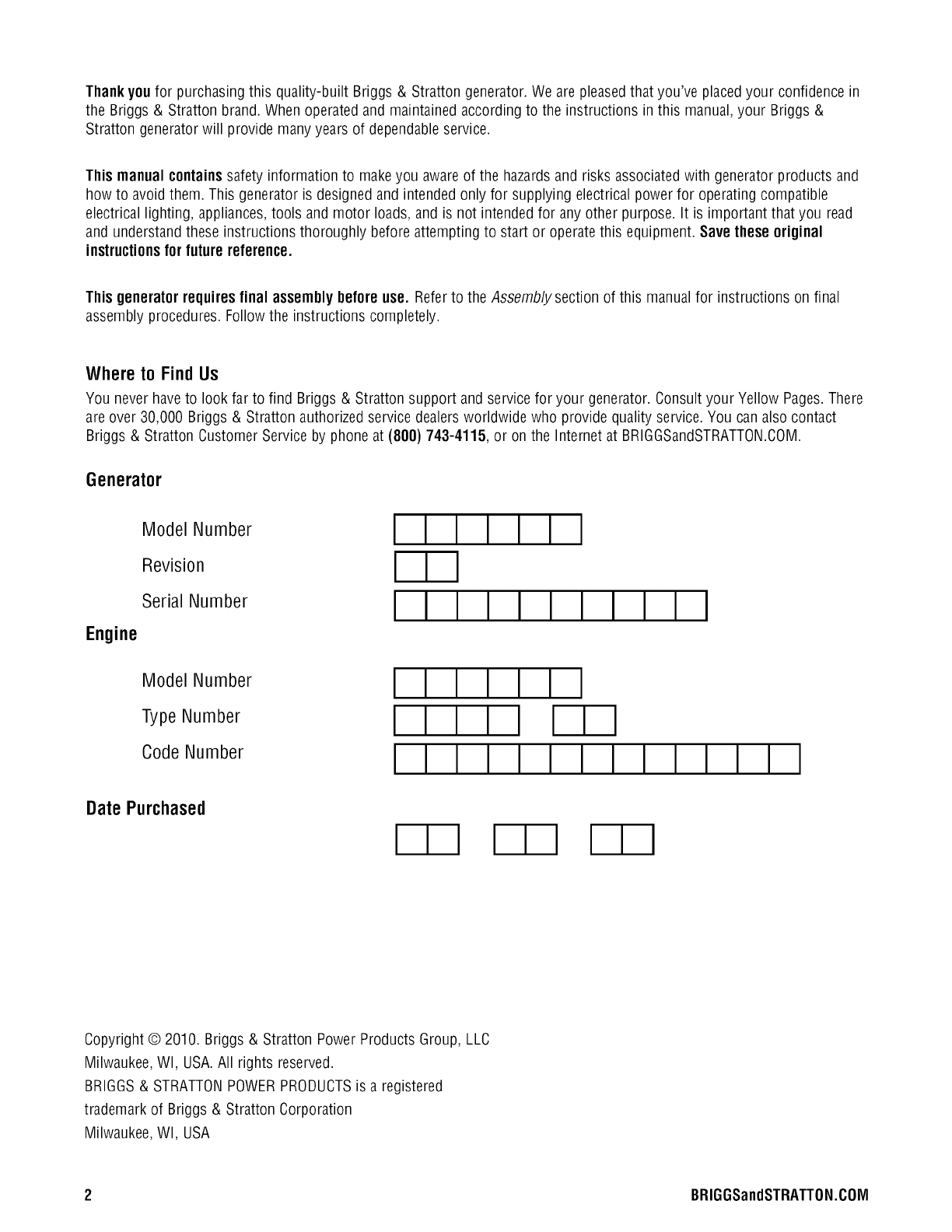 Briggs & Stratton 030471 0 1011060L User Manual GENERATOR Manuals And Guides