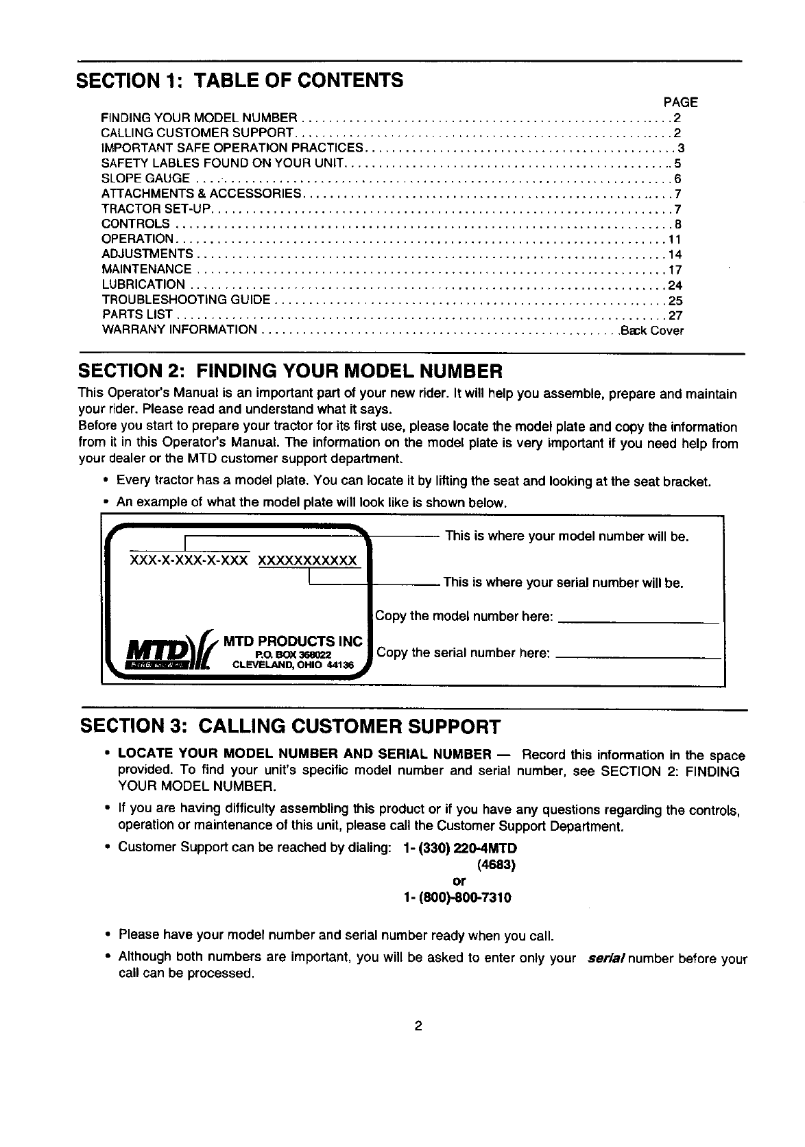 •Every tractor has a model plate. You can locate it by lifting the seat and lookingat the seat bracket.