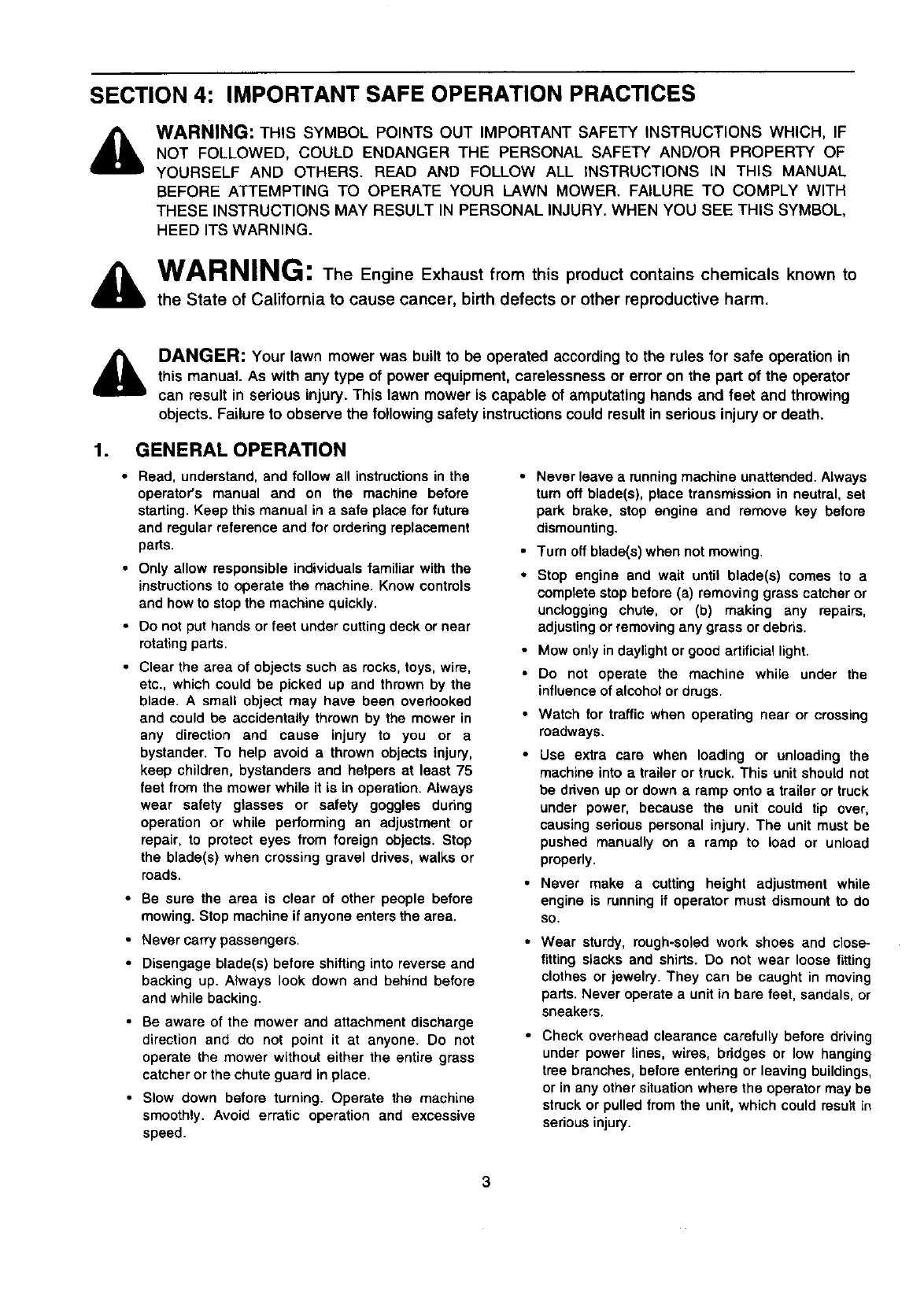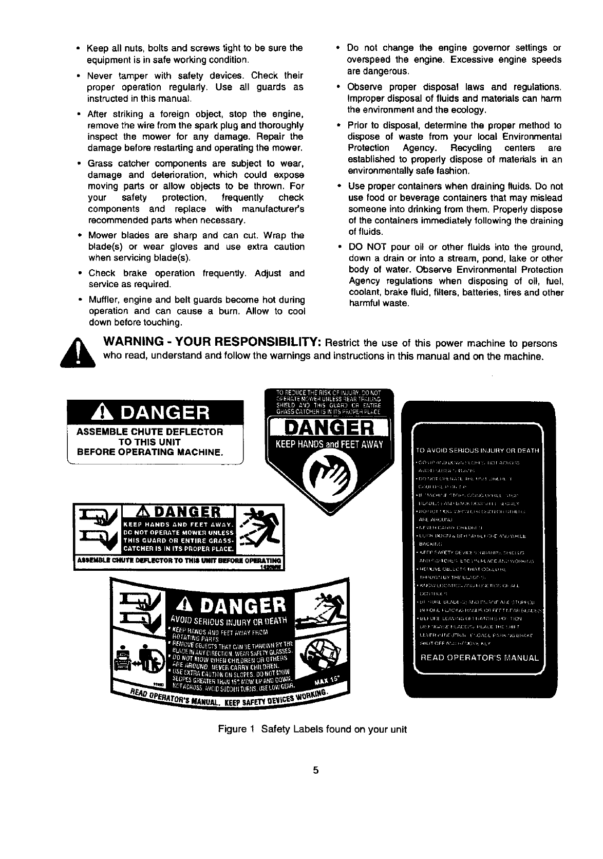 DANGER: Your lawn mower was built to be operated according to the rules for safe operation in