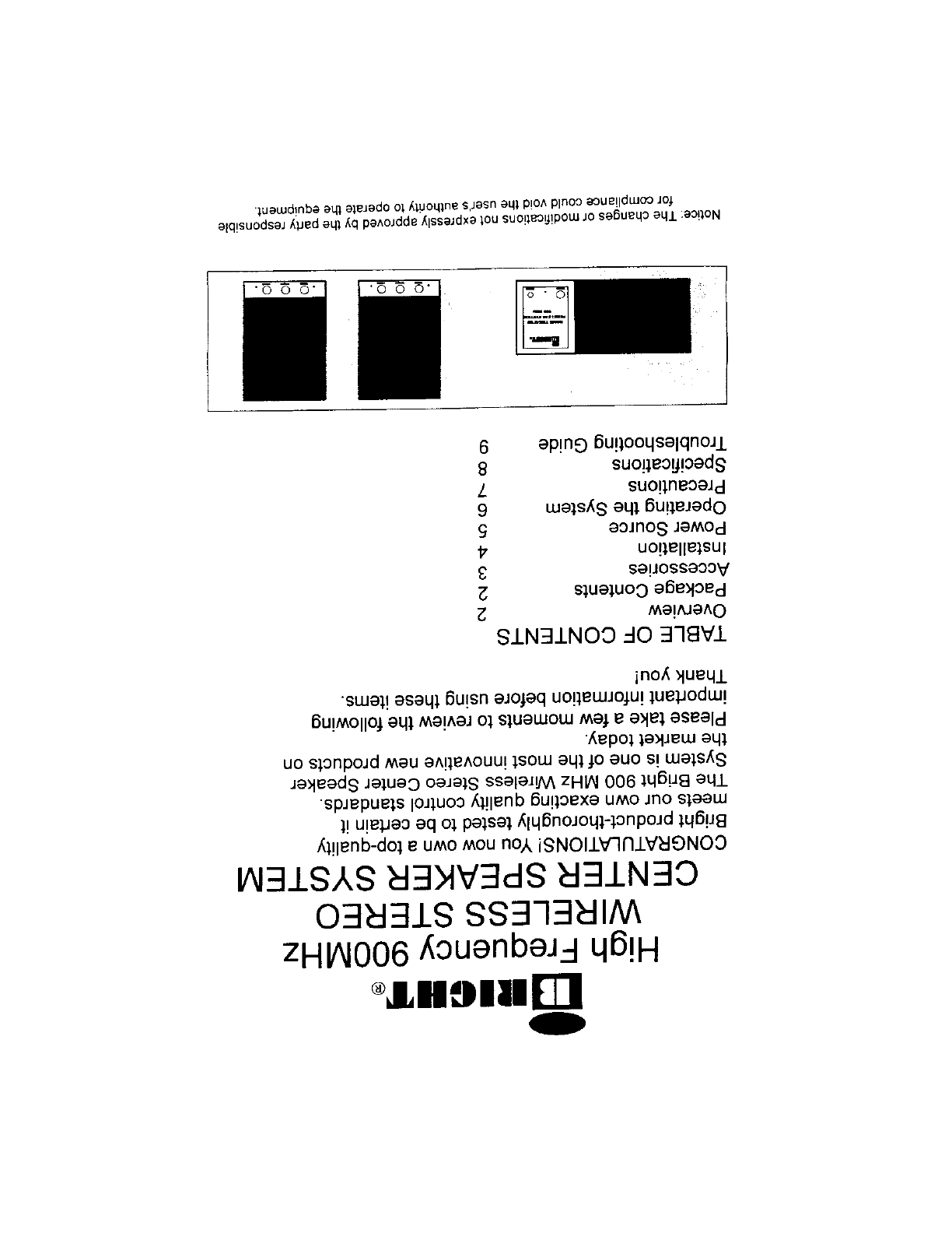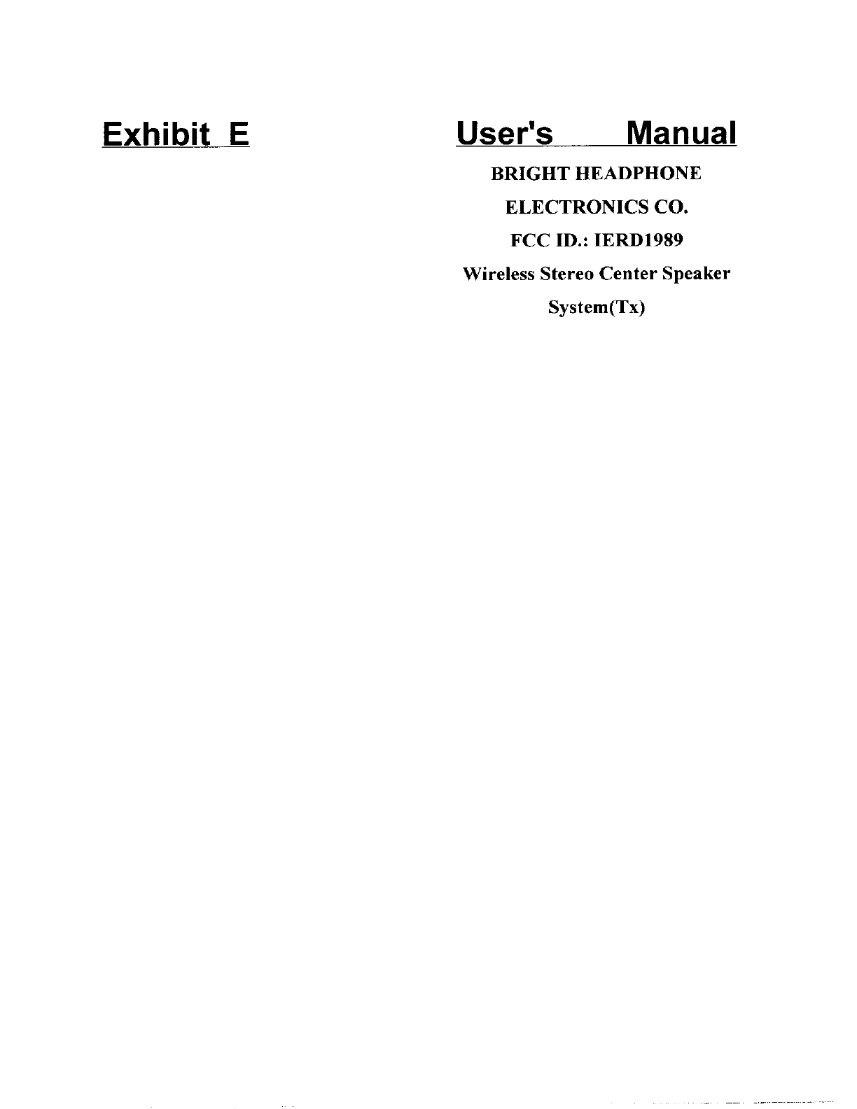 Bright Headphone Electronics Co D1989 Wireless Stereo Speaker System Transmitter User Manual 60183