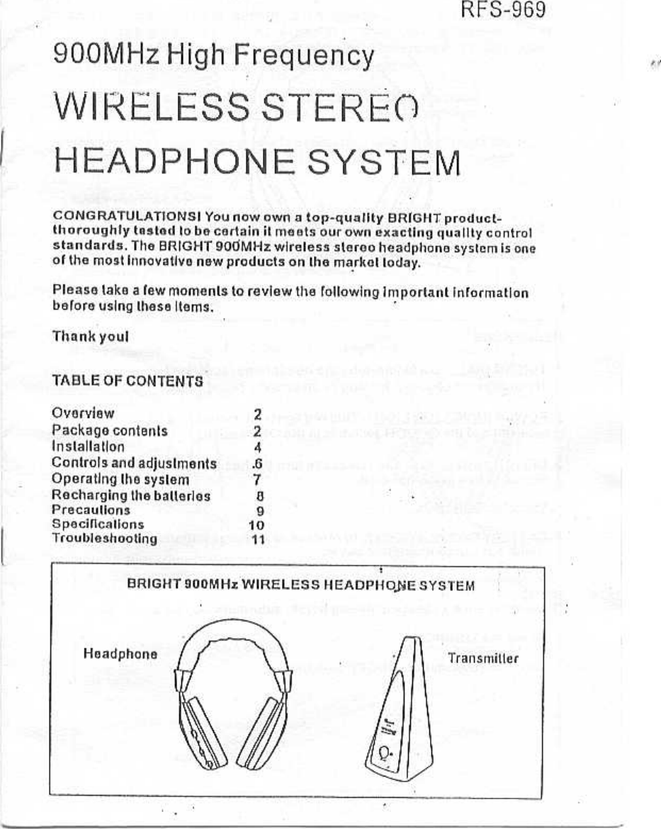Bright Headphone Electronics Co Wireless Transmitter Users Manual