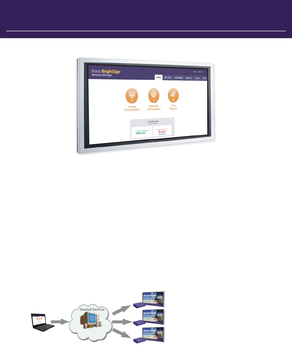 with BrightSign Network Manager. This hosted networking service makes delivering remote content to one