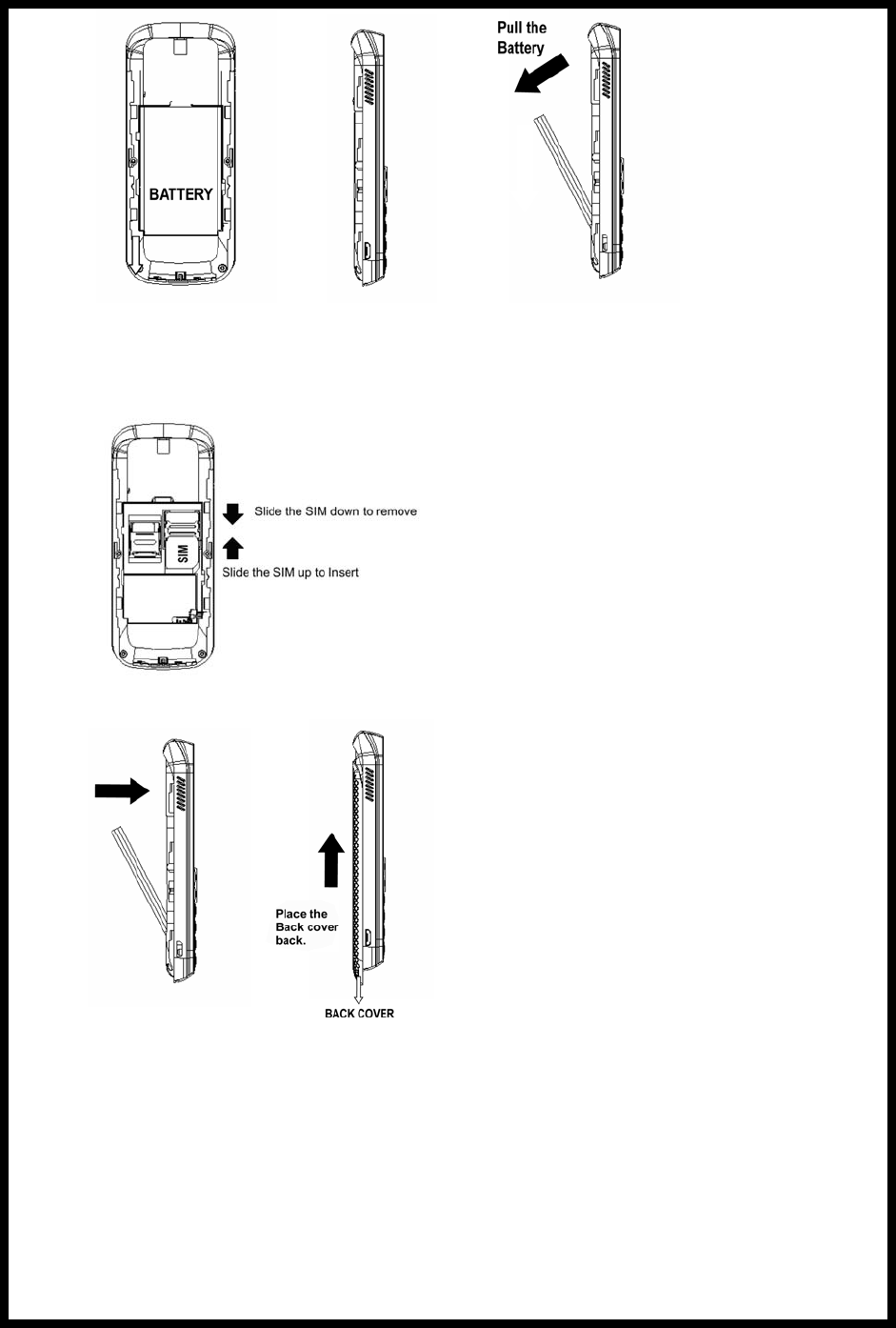 2.1 Installing/ Removing the battery/SIM card.