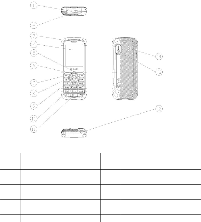 5 Right soft key / Name / Back key 6 Up / Down / Right / Left key