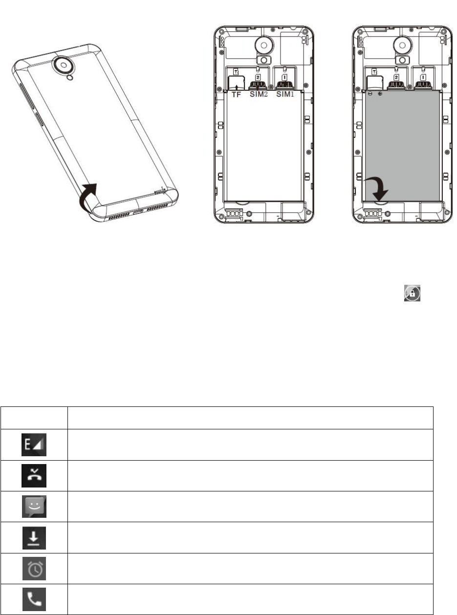 To turn on the smartphone, long press Power On/Off key. To unlock, drag the “ ”icon to the