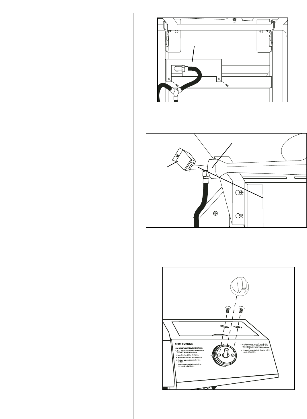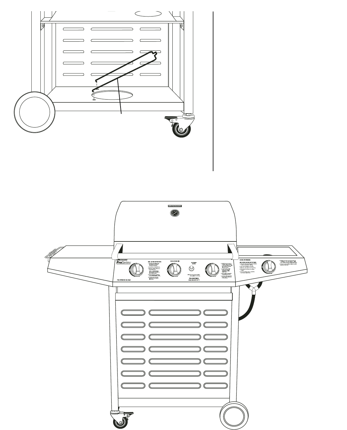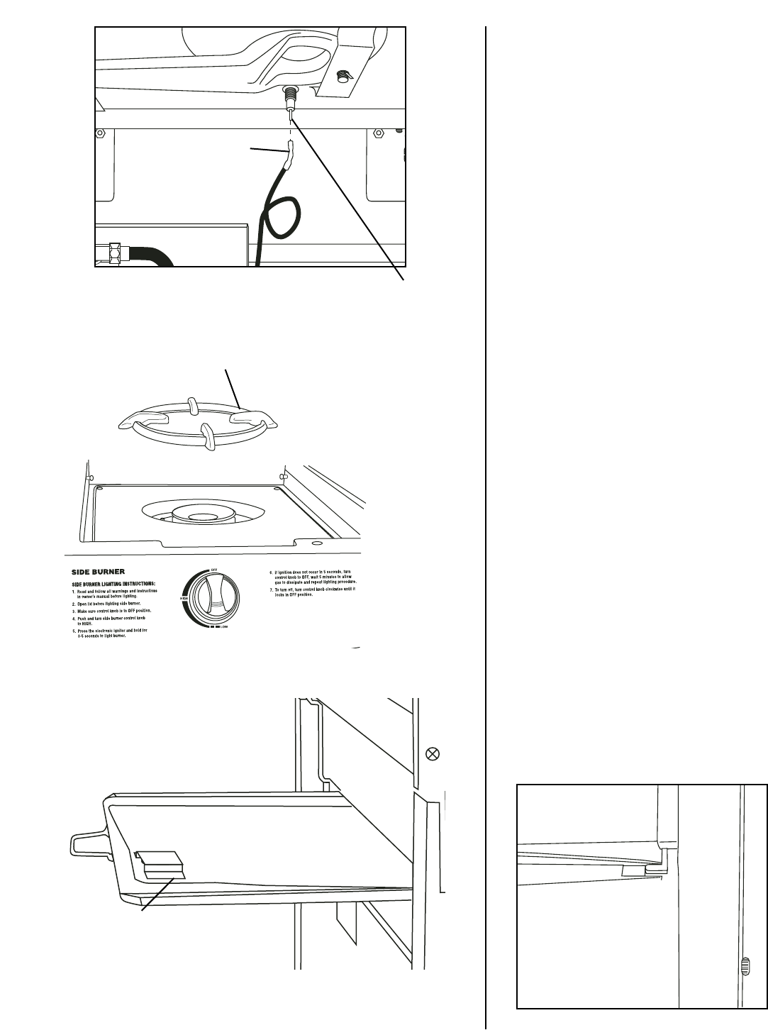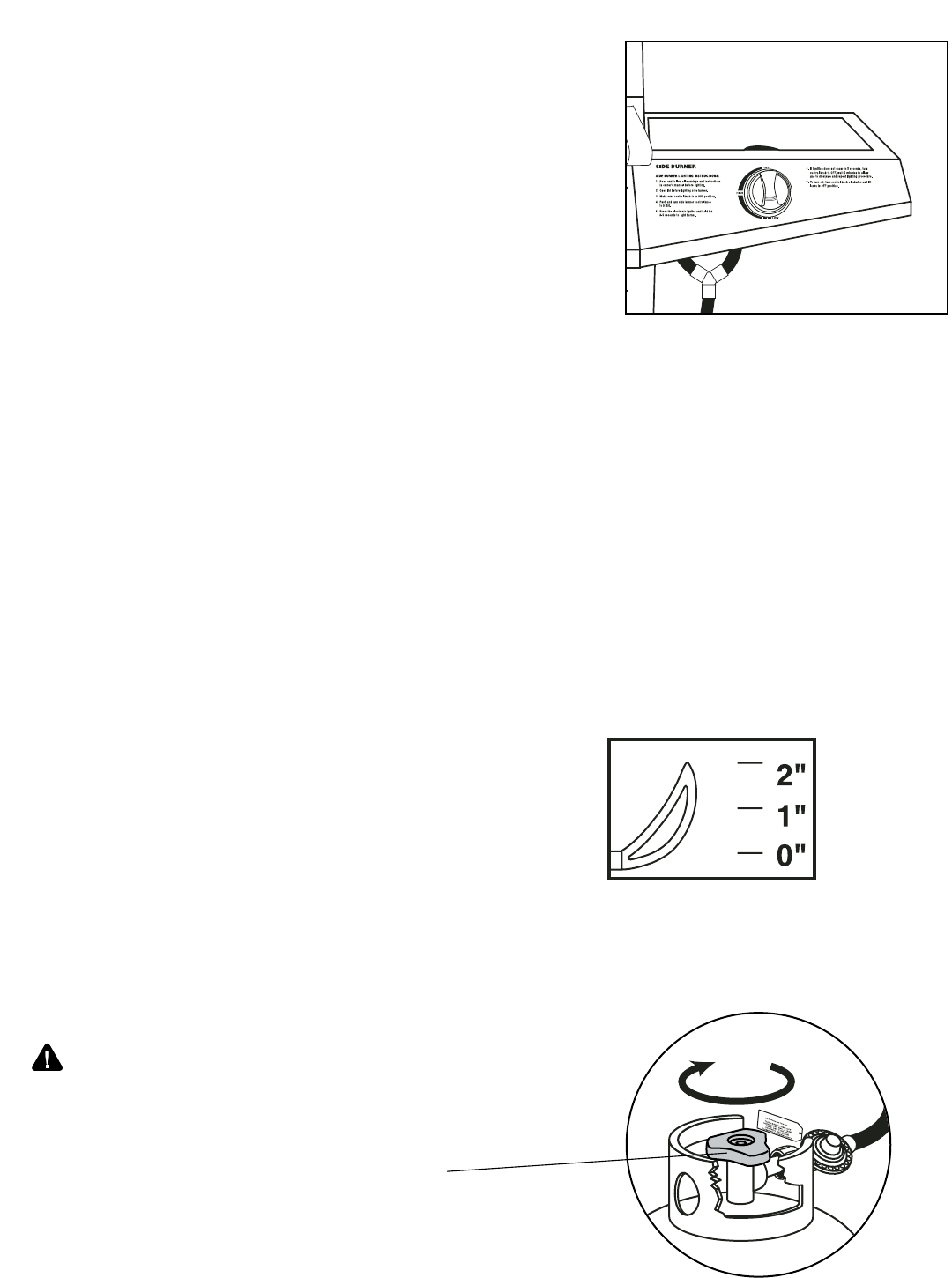 • Never place more than 15 pounds on the side burner. DO NOT lean on the side burner shelf.