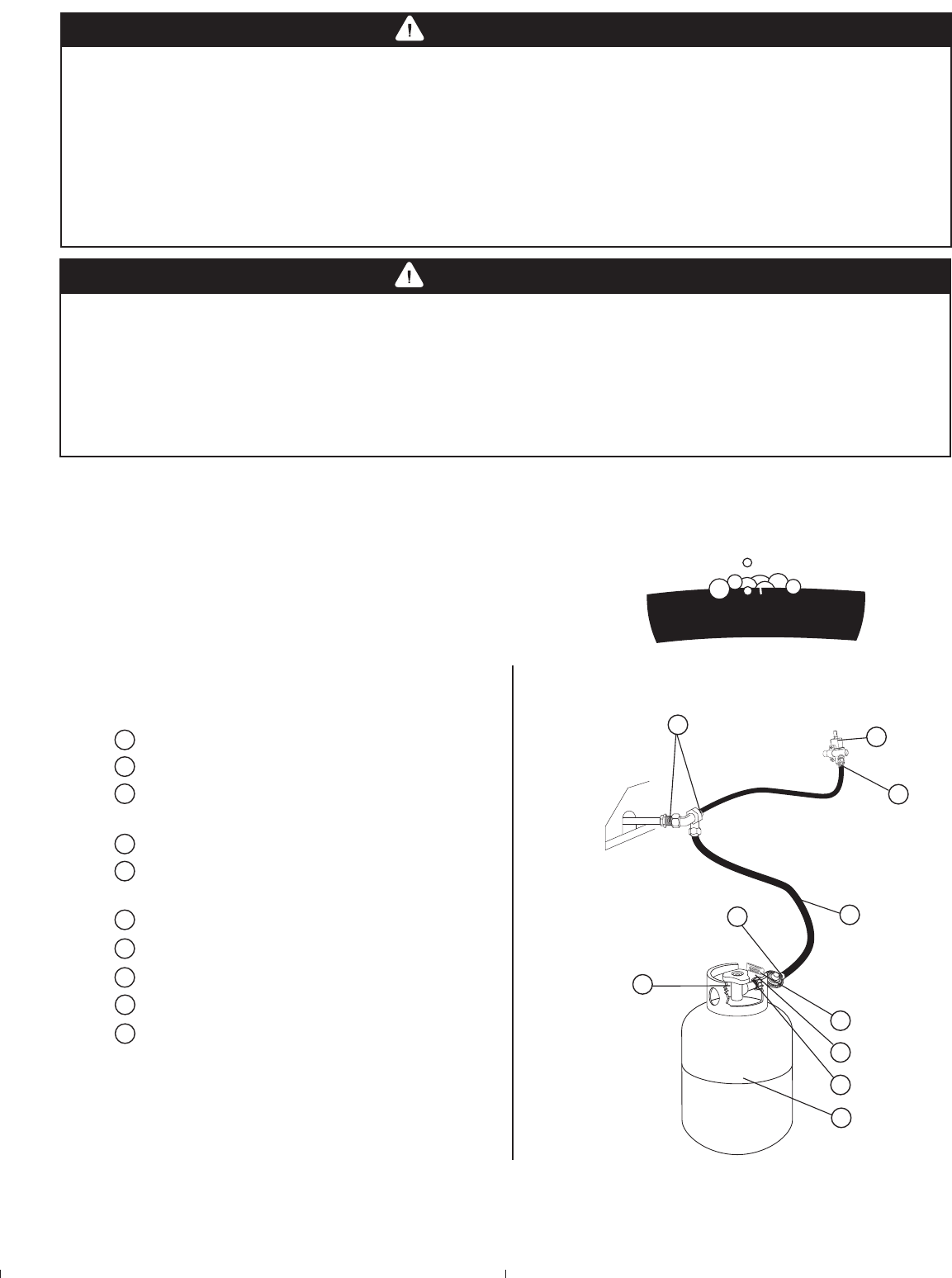 • Leak test all connections before first use, even if grill was purchased fully assembled and after