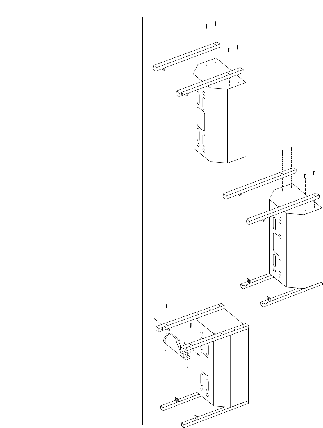 •Never place more than 15 pounds on the side tables. DO NOT lean on the side table shelves.