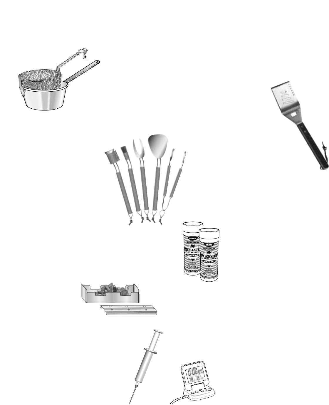 fork, basting brush, and a grill brush. Includes