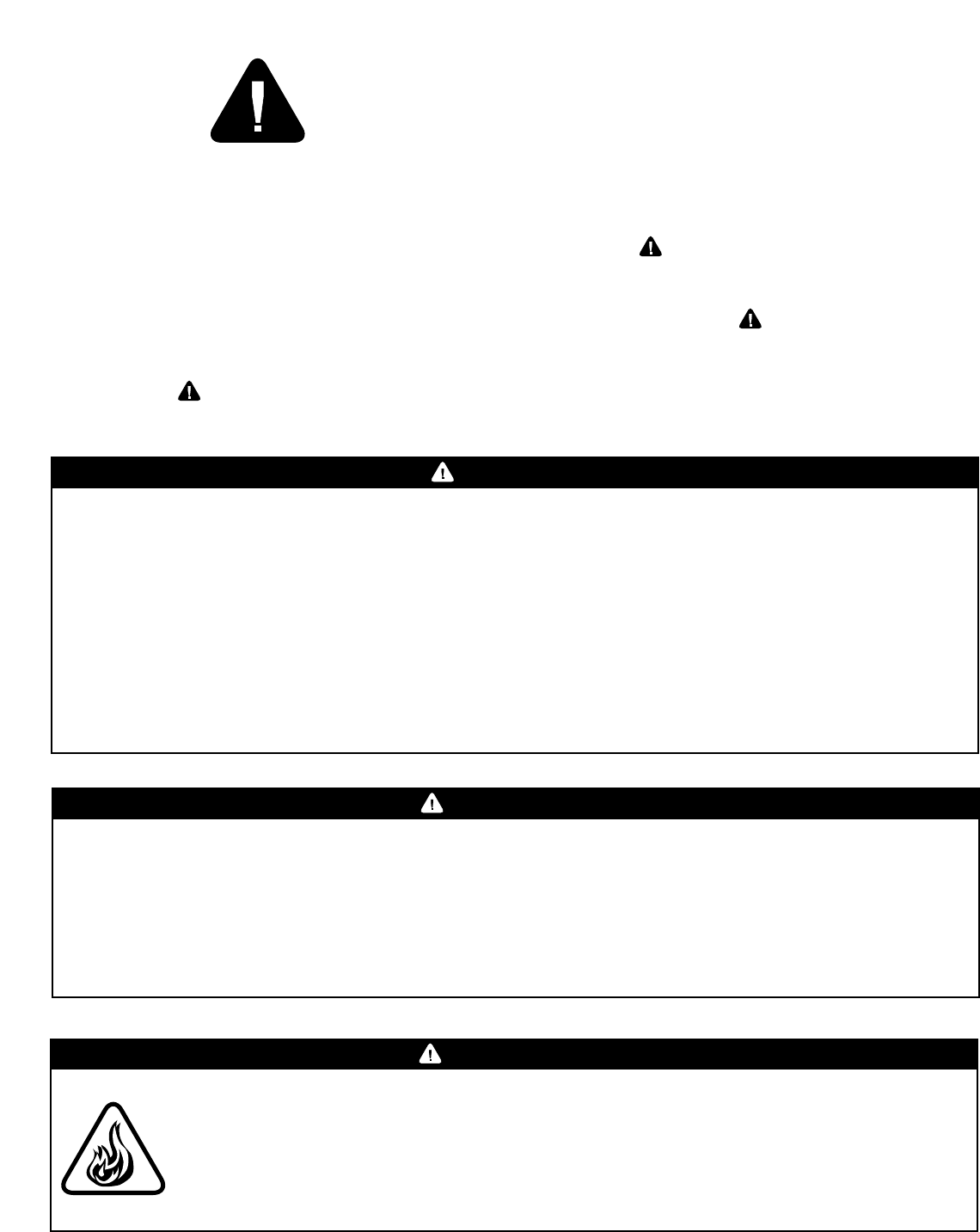 •Keep a fire extinguisher on hand acceptable for use with gas products. Refer to your local