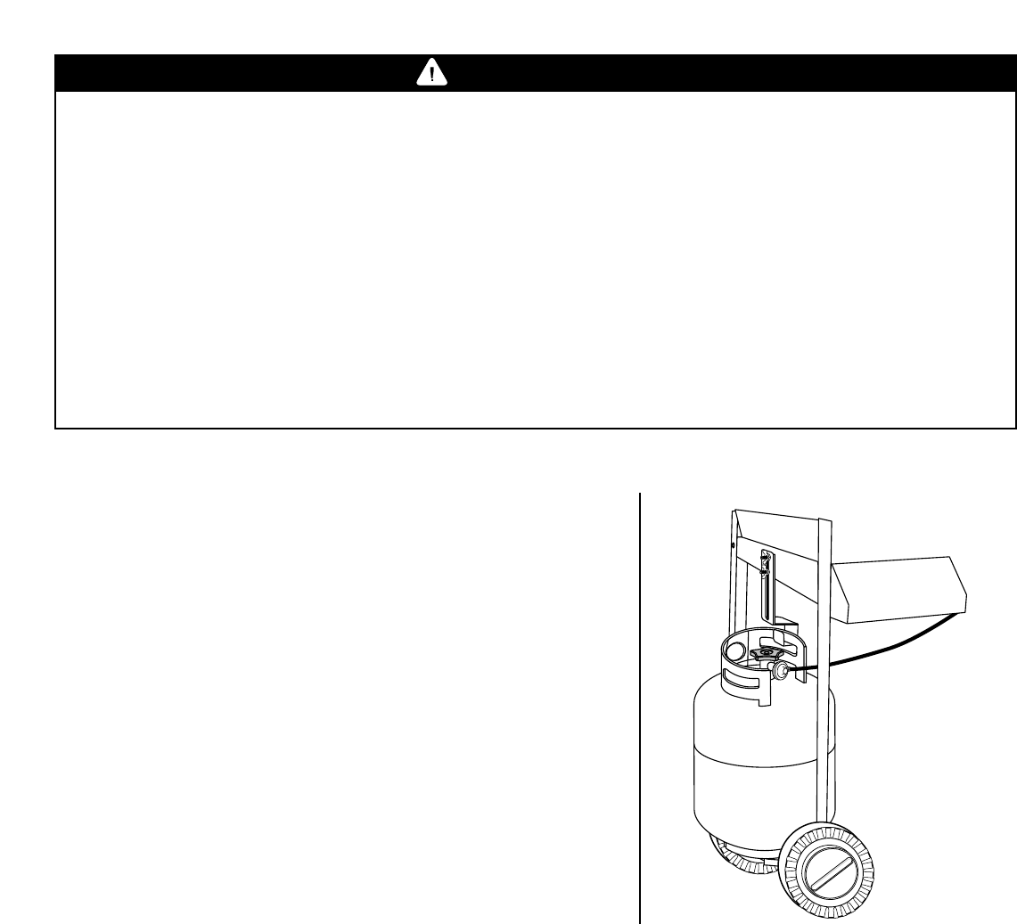 • Never store a spare LP gas cylinder under or near this grill.