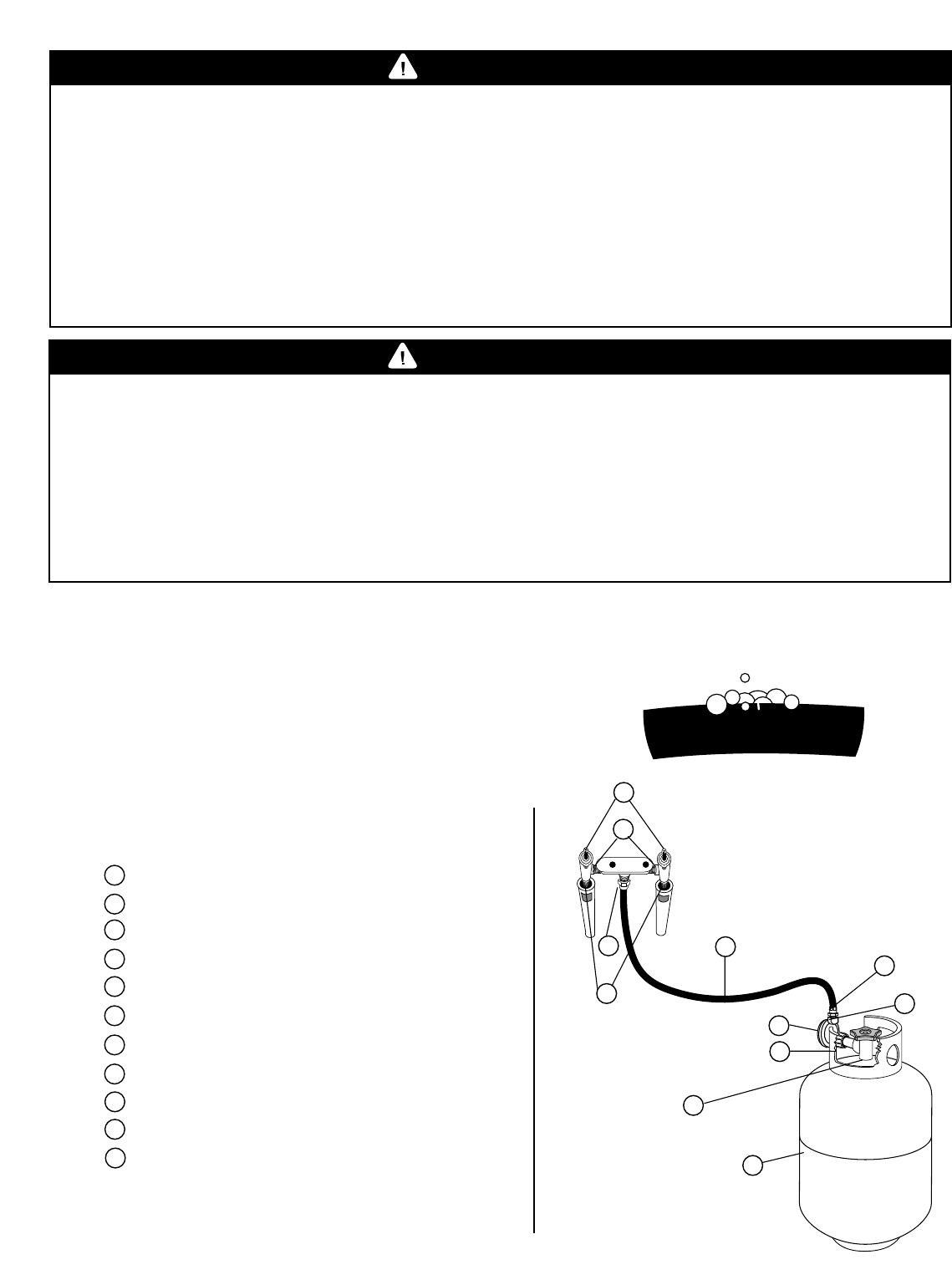 •Leak test all connections before first use, even if grill was purchased fully assembled and after