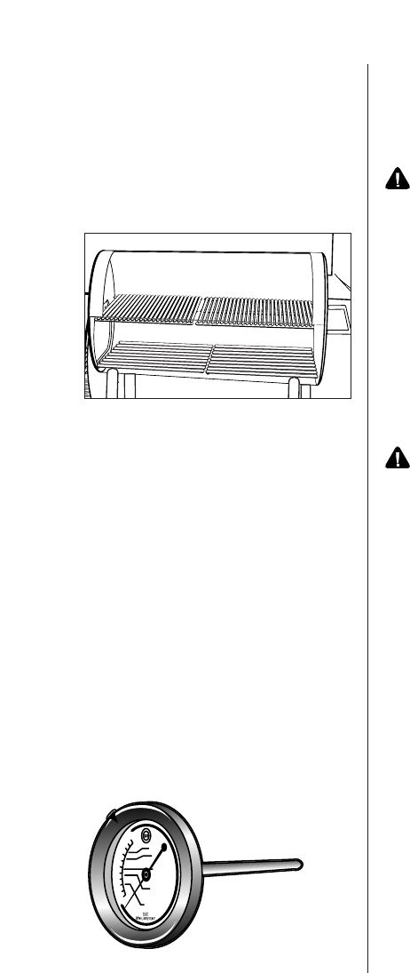 caution and follow instructions in “Adding Charcoal/Wood During Cooking” section of this manual.