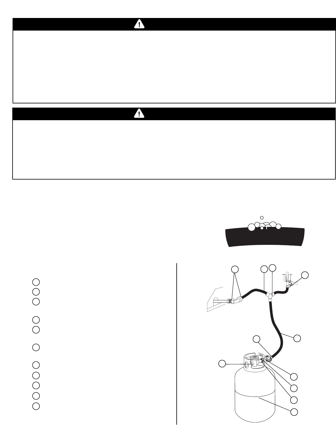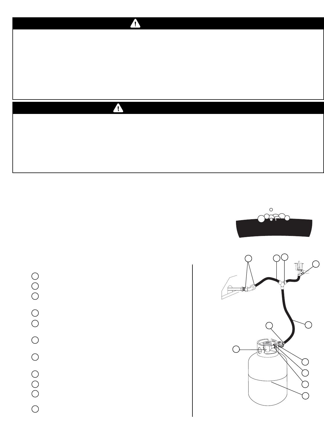 • Leak test all connections before first use, even if grill was purchased fully assembled and after