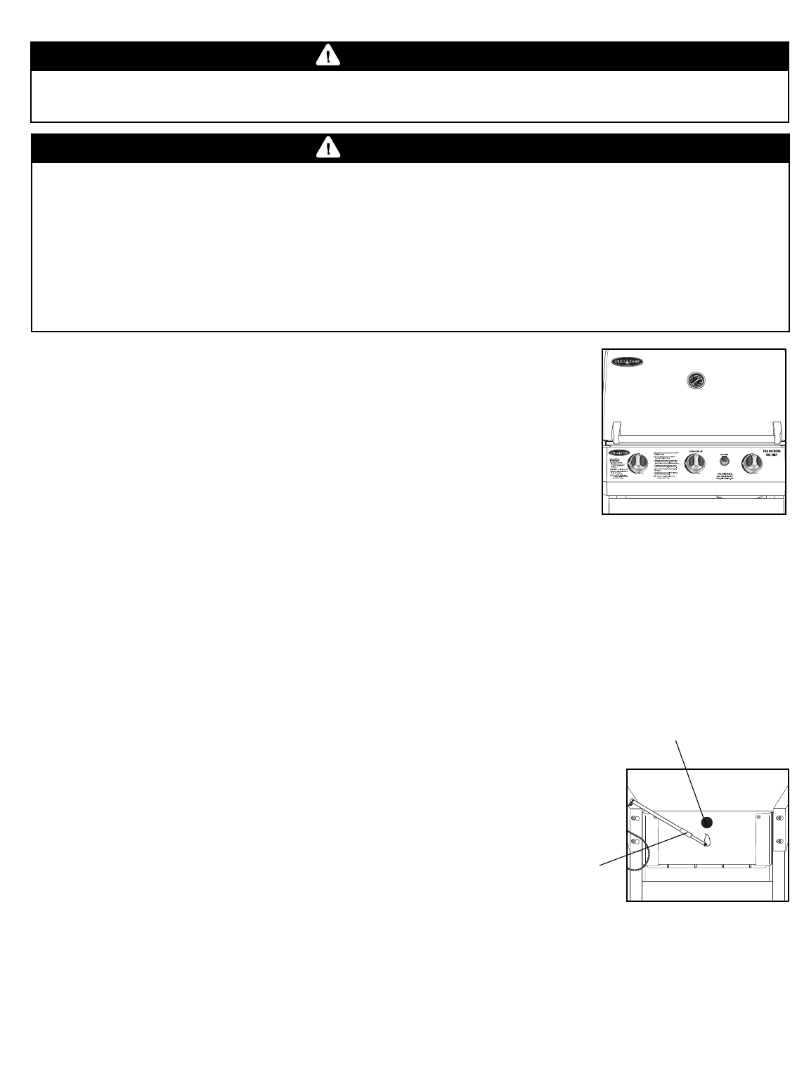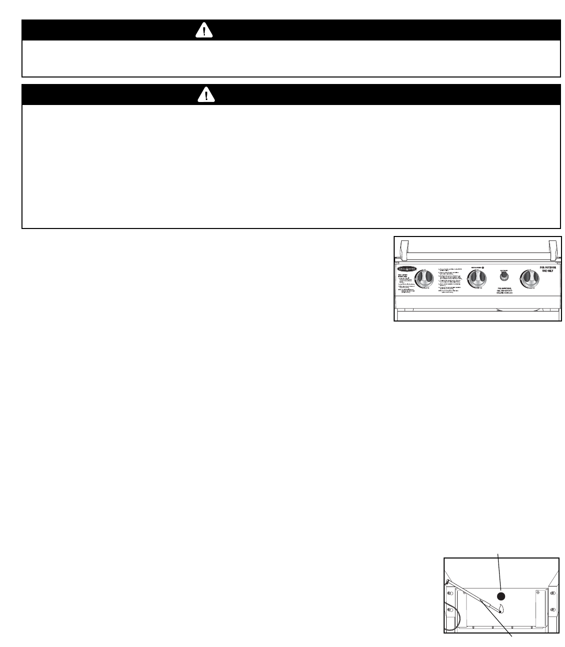 • Never use charcoal or wood briquets in a gas grill. Flavoring chips must be contained in a metal