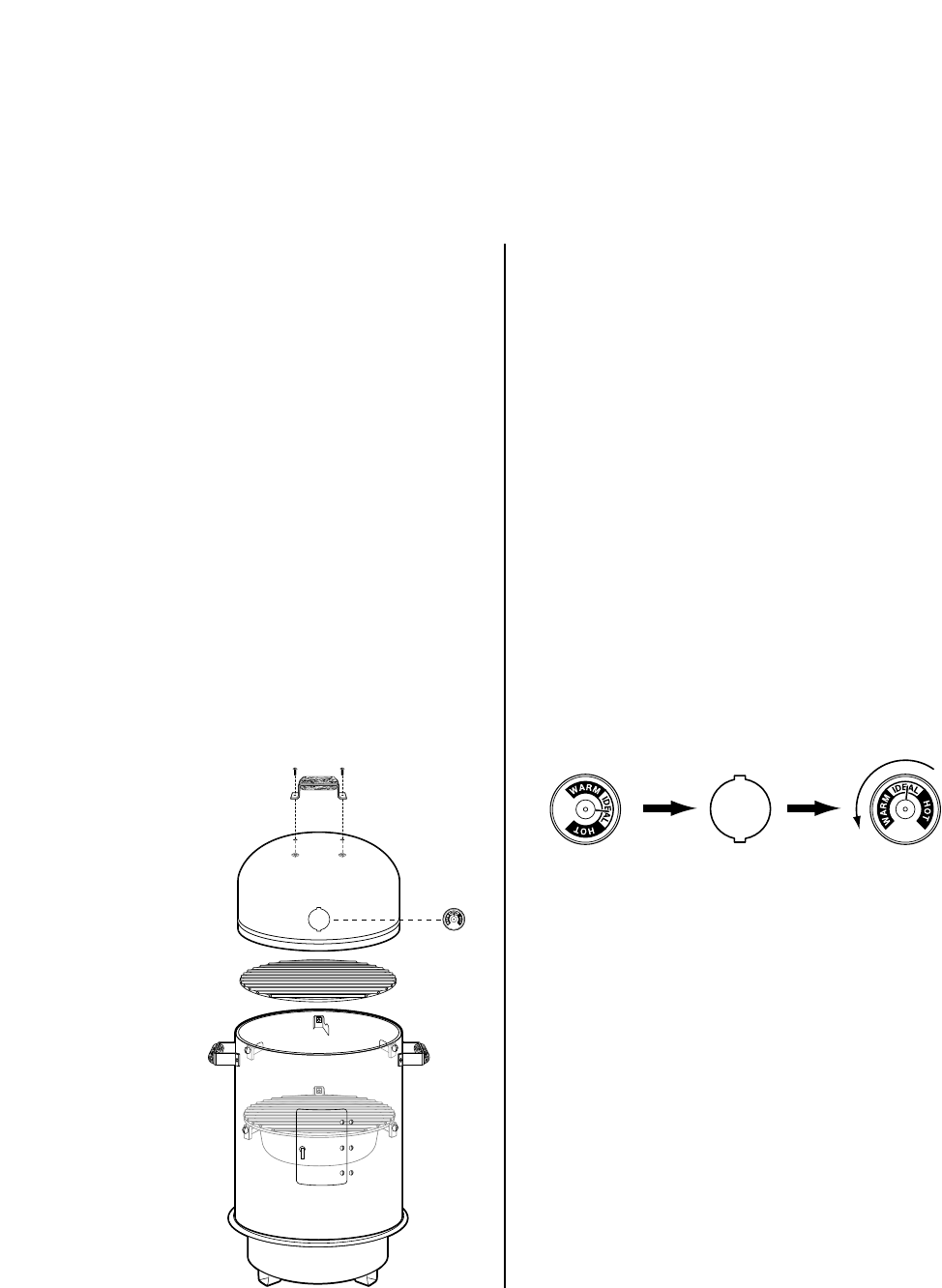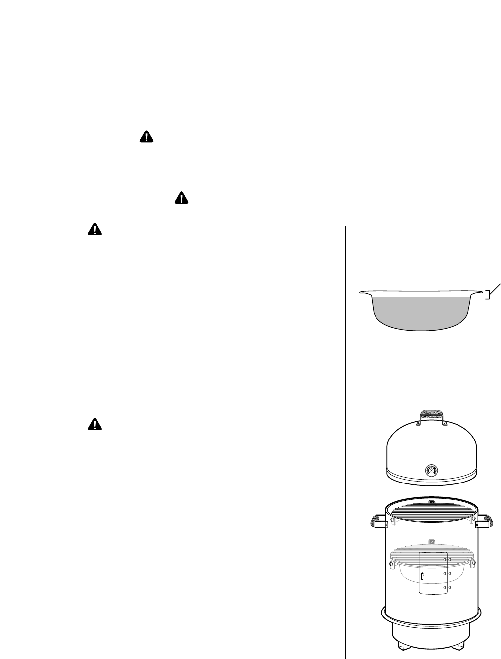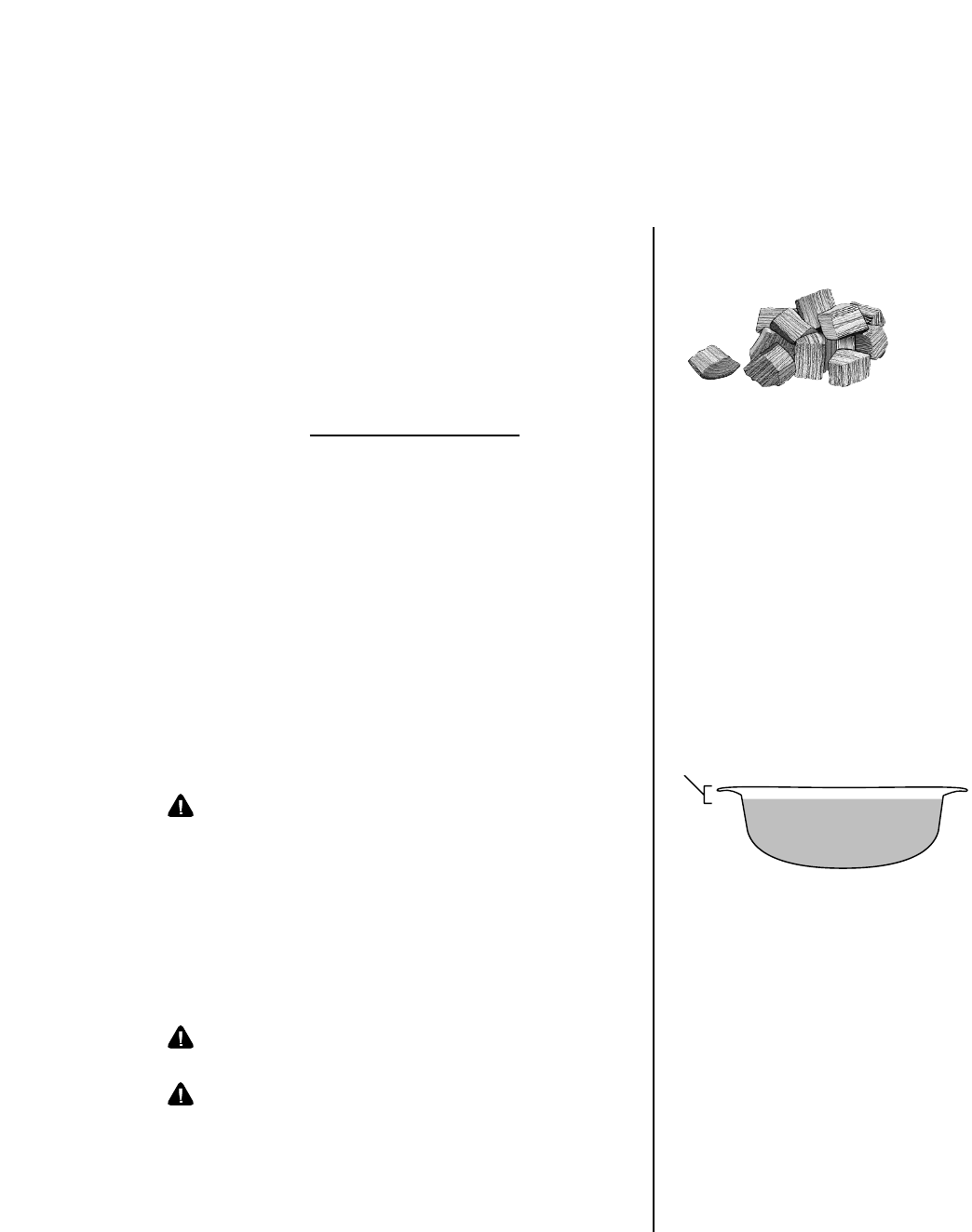 • Use extreme caution when adding charcoal/wood. Follow instructions in “Adding Charcoal/Wood During Cooking” section