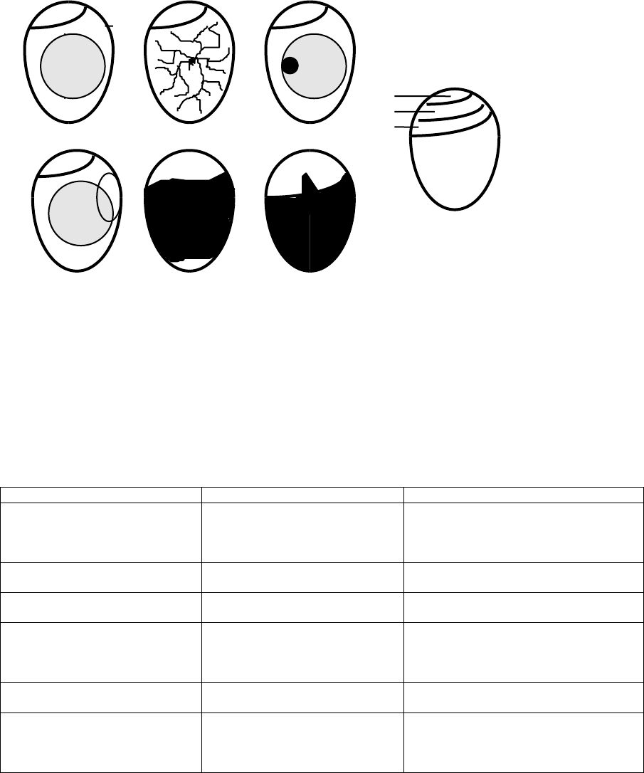 3) Red or black staining - early death when candled at 8 days