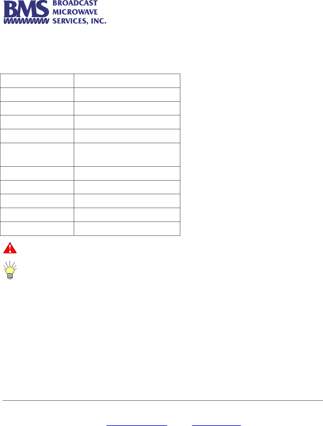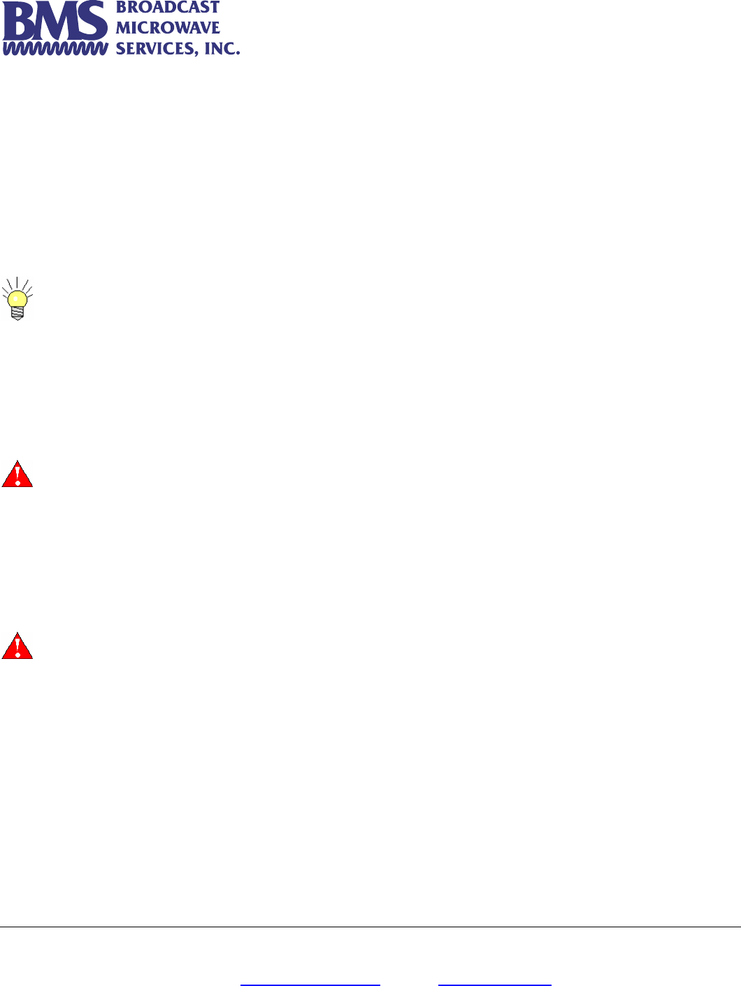 This warning is provided by Broadcast Microwave Services (BMS) Inc. for safety purpose. The following information help