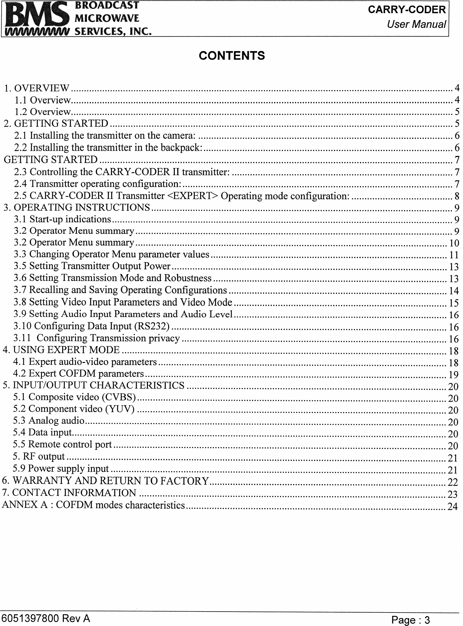 Broadcast Microwave Services CCII-7 Carry Coder II User Manual 02 24 2005