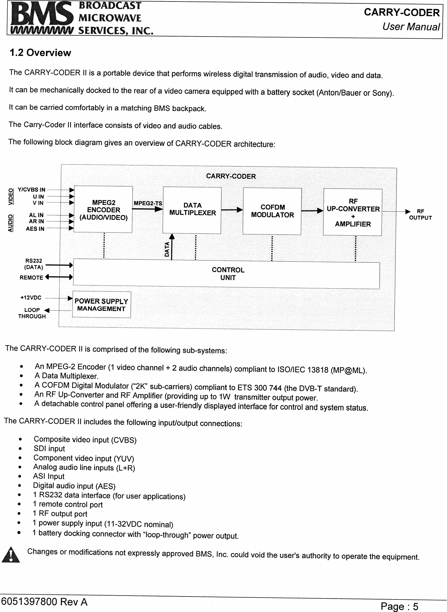 Broadcast Microwave Services Inc Carry Coder II 02 24 2005