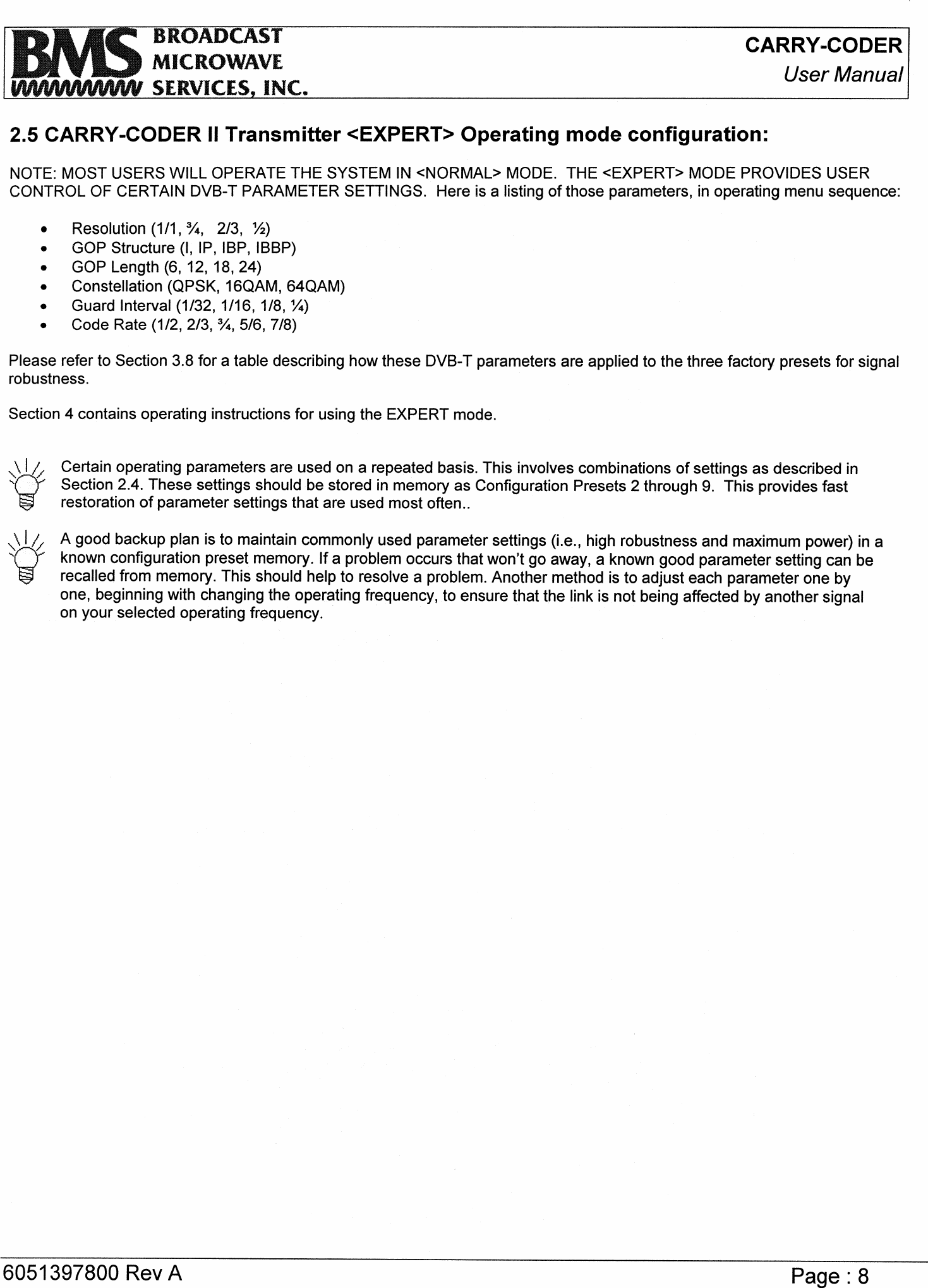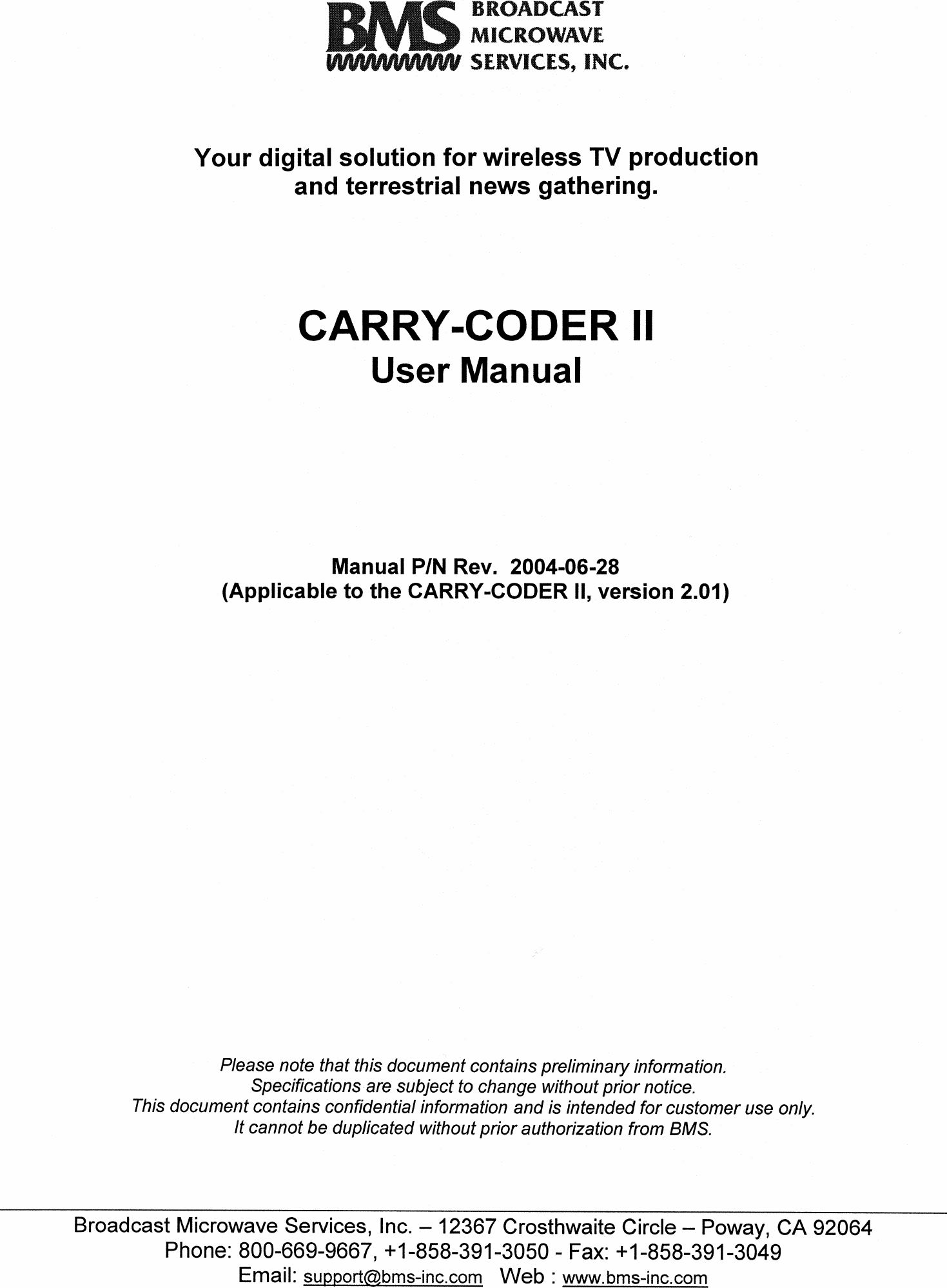 Broadcast Microwave Services Inc Carry Coder II 02 24 2005