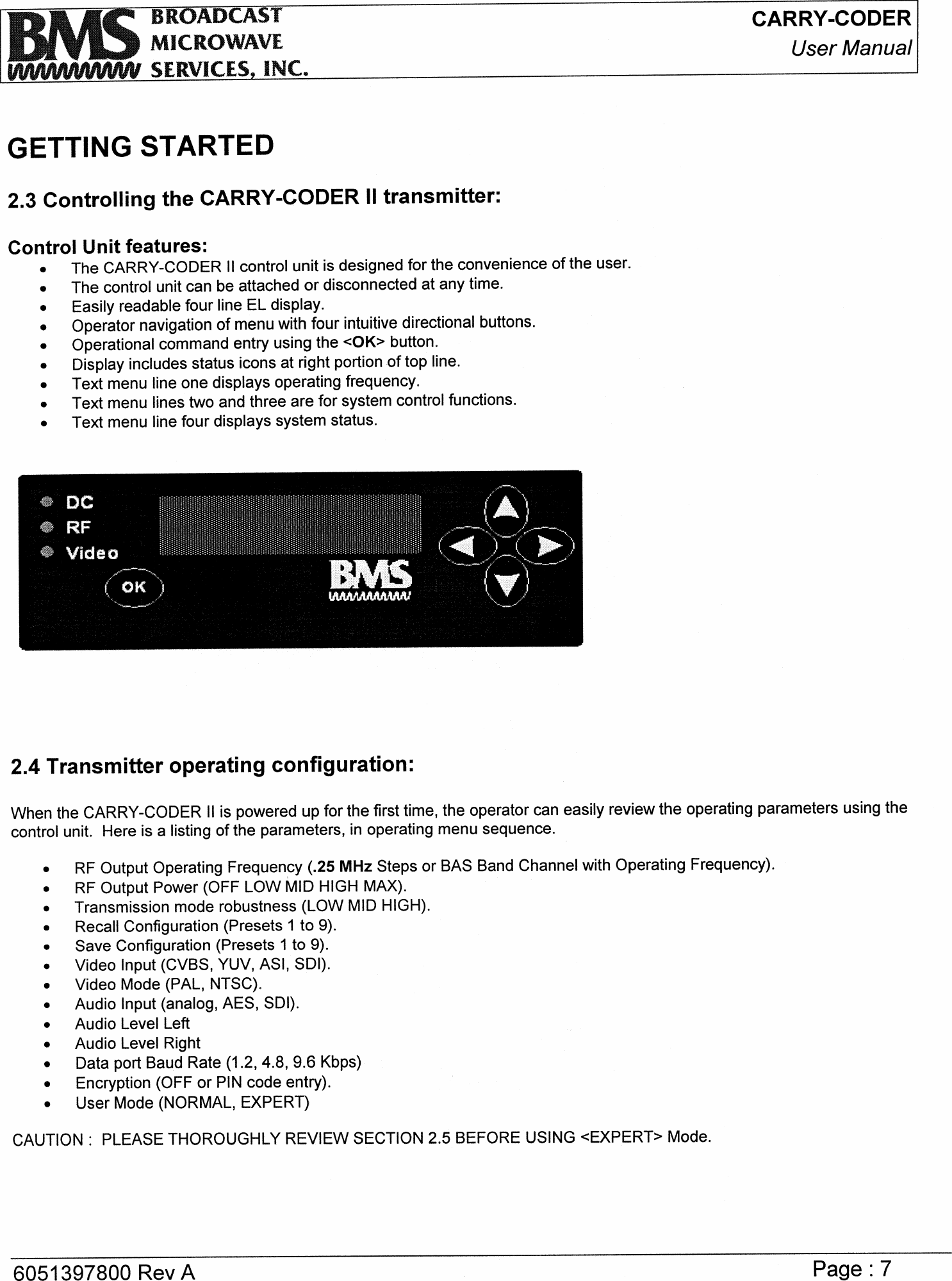 Broadcast Microwave Services CCII-7-D Carry Coder II User Manual 02 24 2005