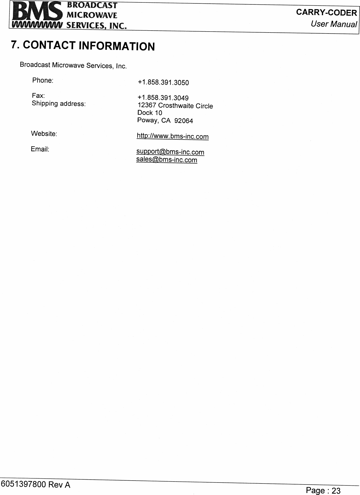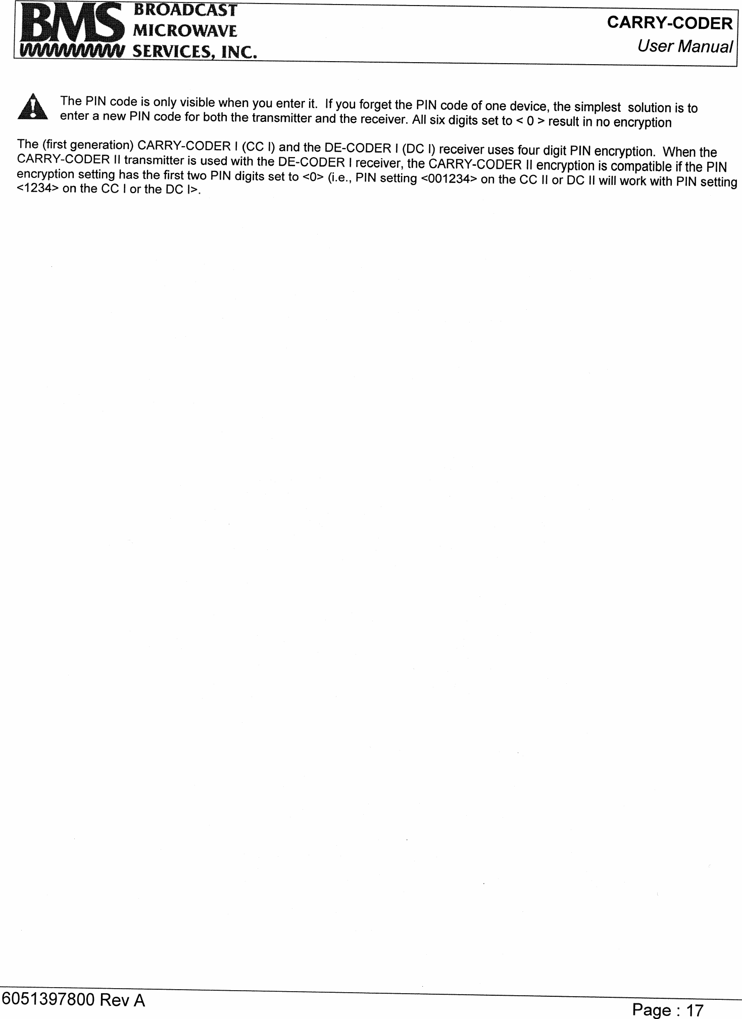 Broadcast Microwave Services CCII-7 Carry Coder II User Manual 02 24 2005