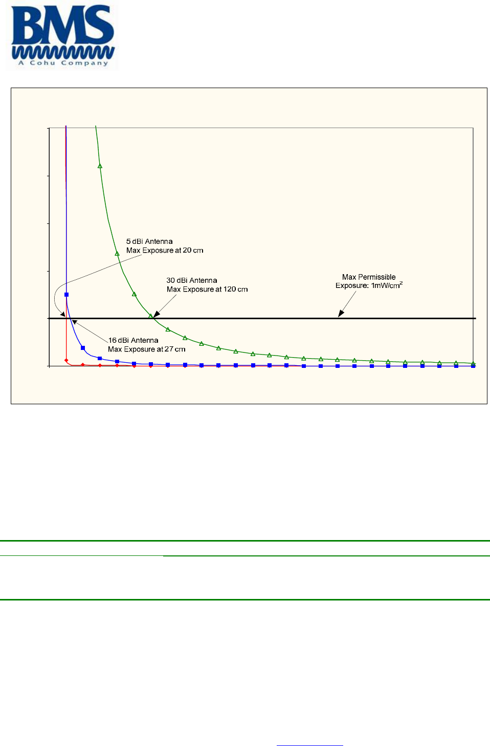 Figure 1 shows the plot of the minimum exposure distance for 5dBi, 16dBi, and 30dBi