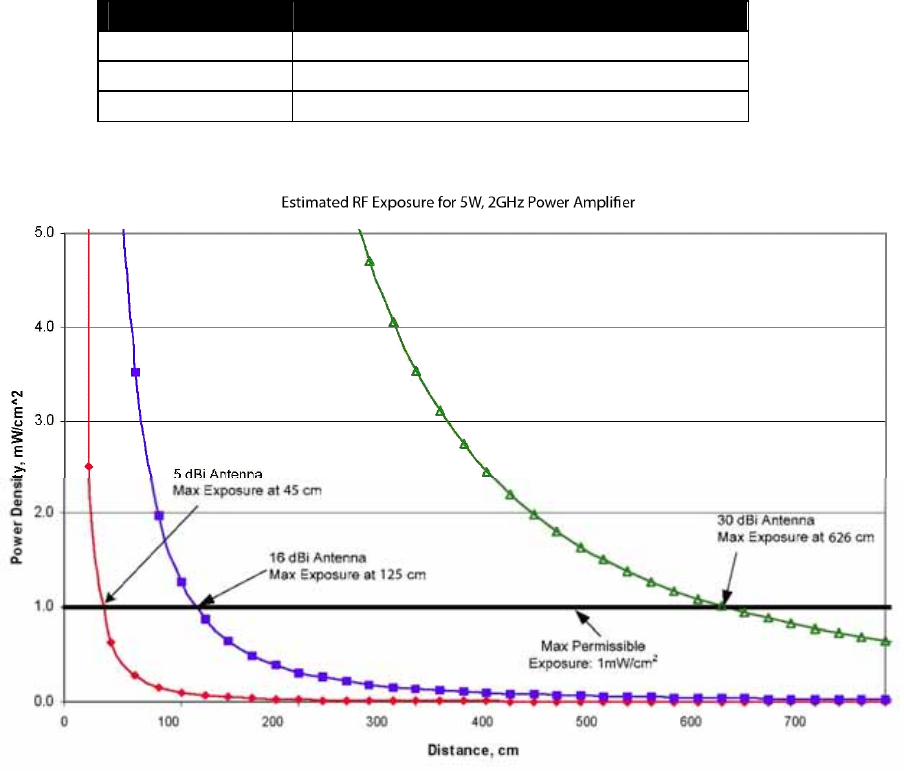 Figure 1 shows the plot of the minimum exposure distance for 5dBi, 16dBi, and 30dBi