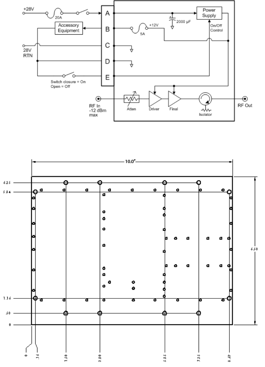 5. The PA’s mounting footprint and envelope are shown in Figure 8 and Figure 9.