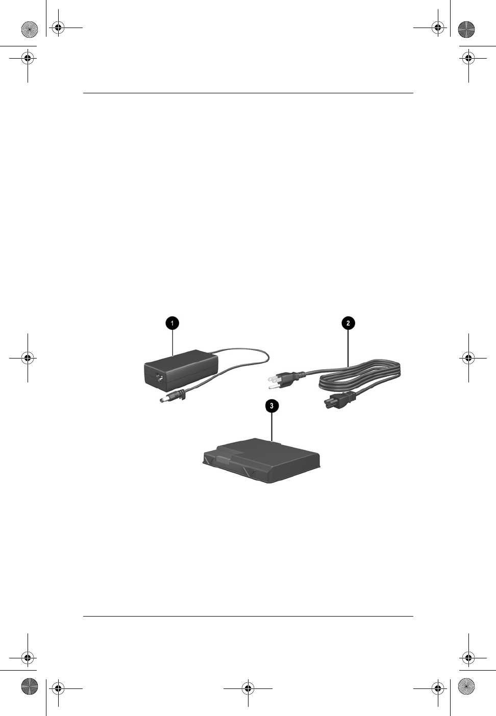 the AC adapter 1, the power cord 2, and the battery pack 3.