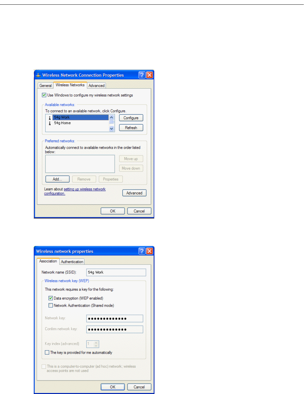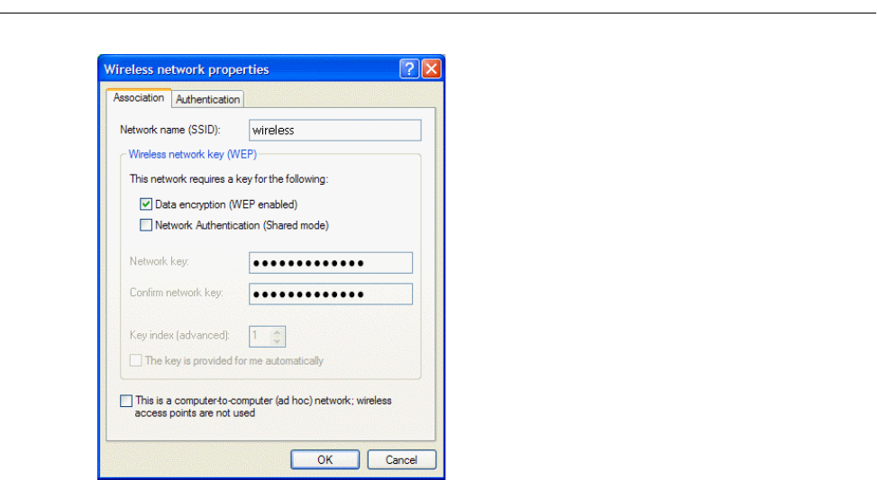 enabled in the network profile and the WEP key in the computer must be set to match the WEP key used by