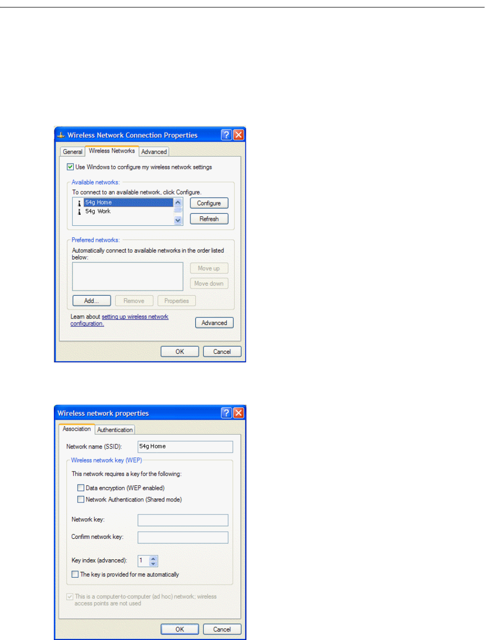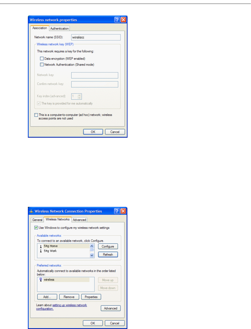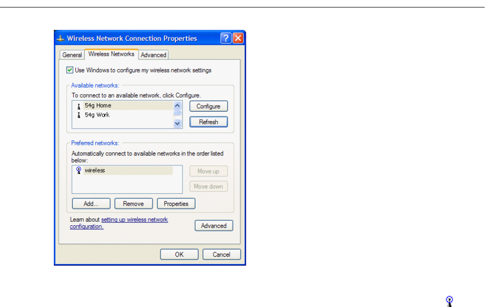 Preferred networks on the Wireless Networks tab of Wireless Network