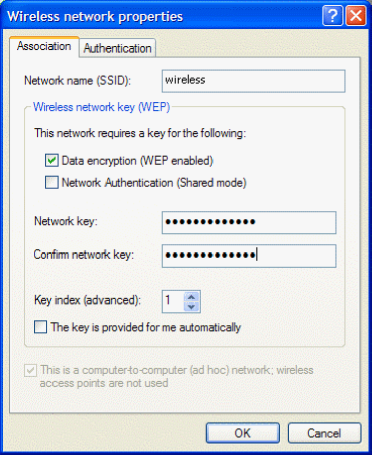 sent over radio waves. The use of the WEP key is optional and can be enabled or disabled. If the network being
