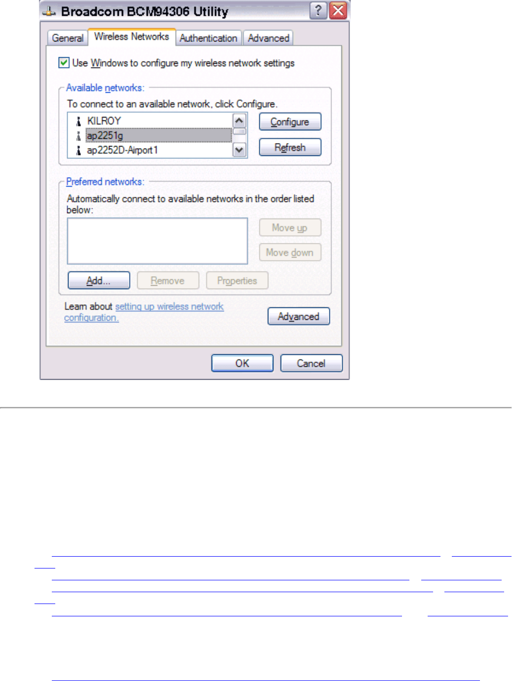 When you start your computer, your Broadcom BCM94306CB internal 802.11g Cardbus card detects certain wireless networks that are