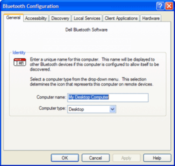 The properties of the Bluetooth wireless device on this computer are set during installation. These default settings should