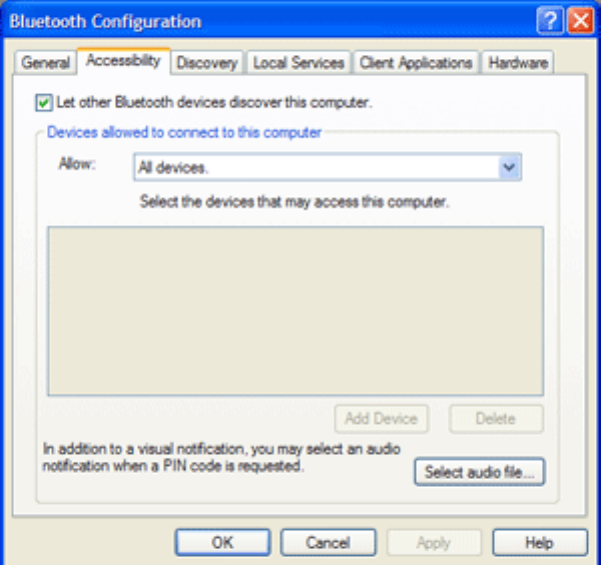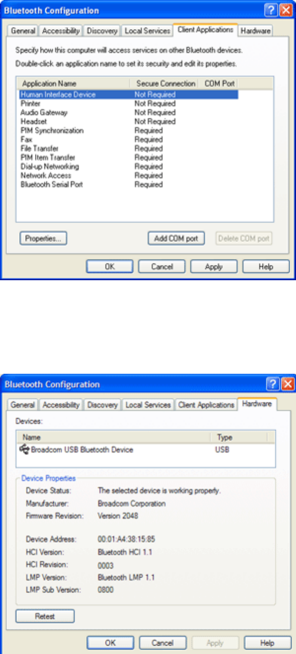 Client Applications Software applications on this computer that allow this computer to use the Bluetooth