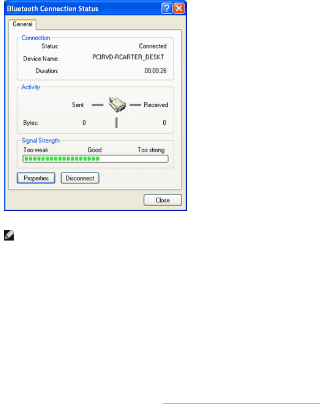 A green-on-blue icon indicates that the Bluetooth device on this computer is connected to a remote Bluetooth device