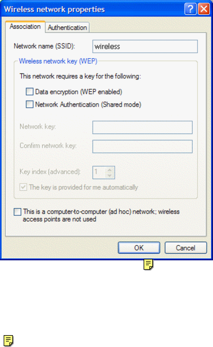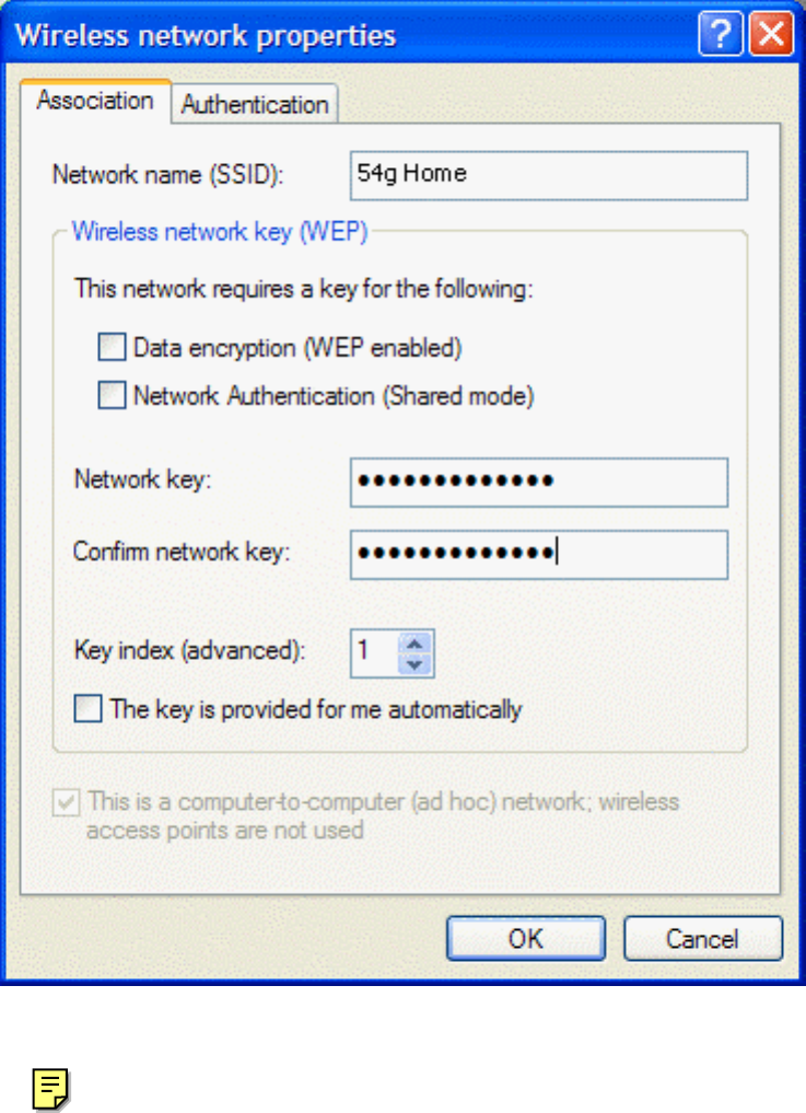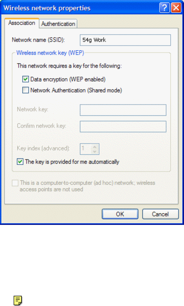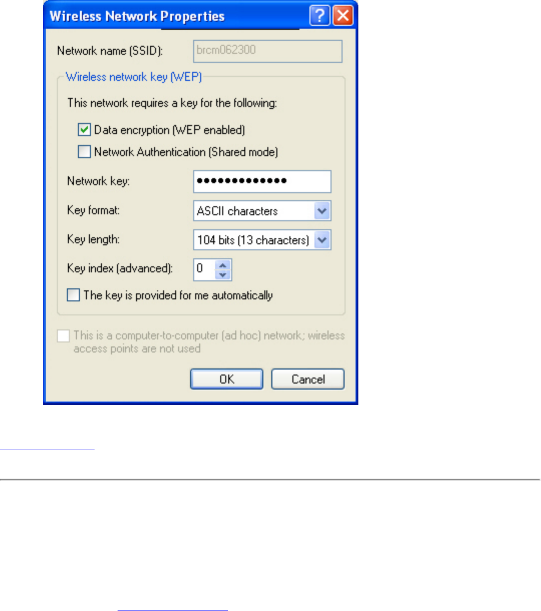 (SSID) that the notebook recognizes upon startup. To enable WEP, use any string of numbers for the WEP key.