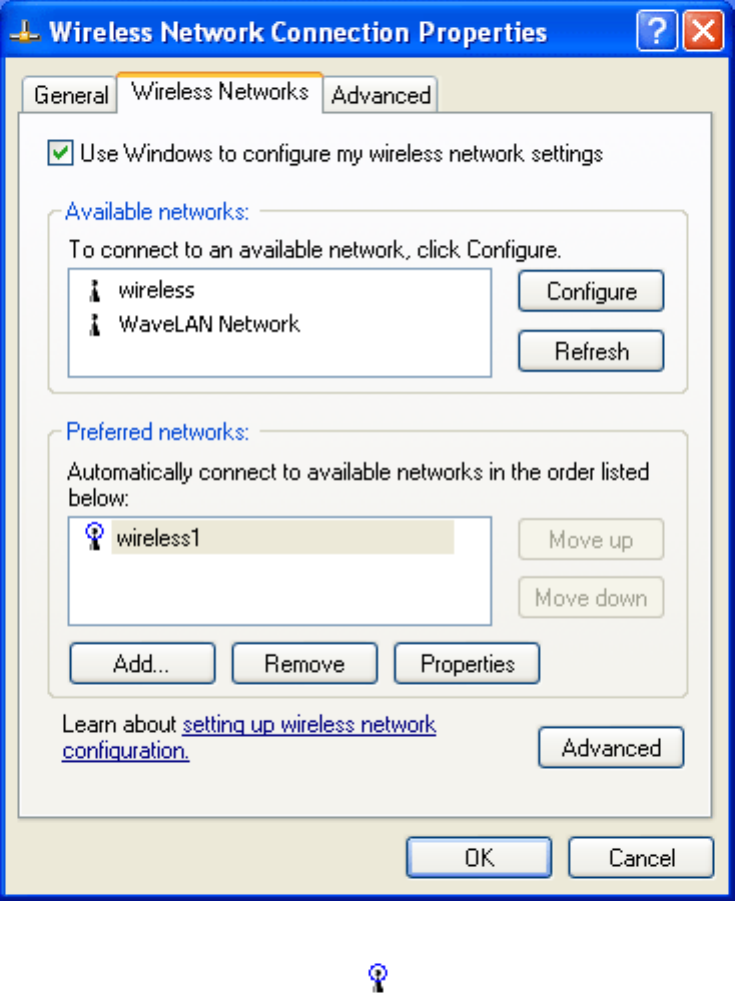 6. Click OK. The network name and icon appear at the top of the list under Preferred networks.