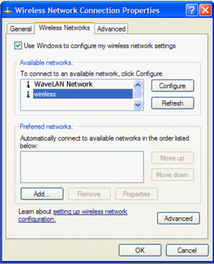 3. Click OK to activate the network connection. To verify that the network connection has been made, reopen Wireless