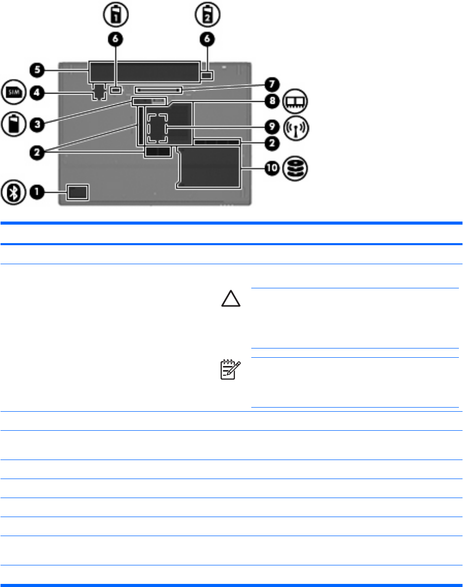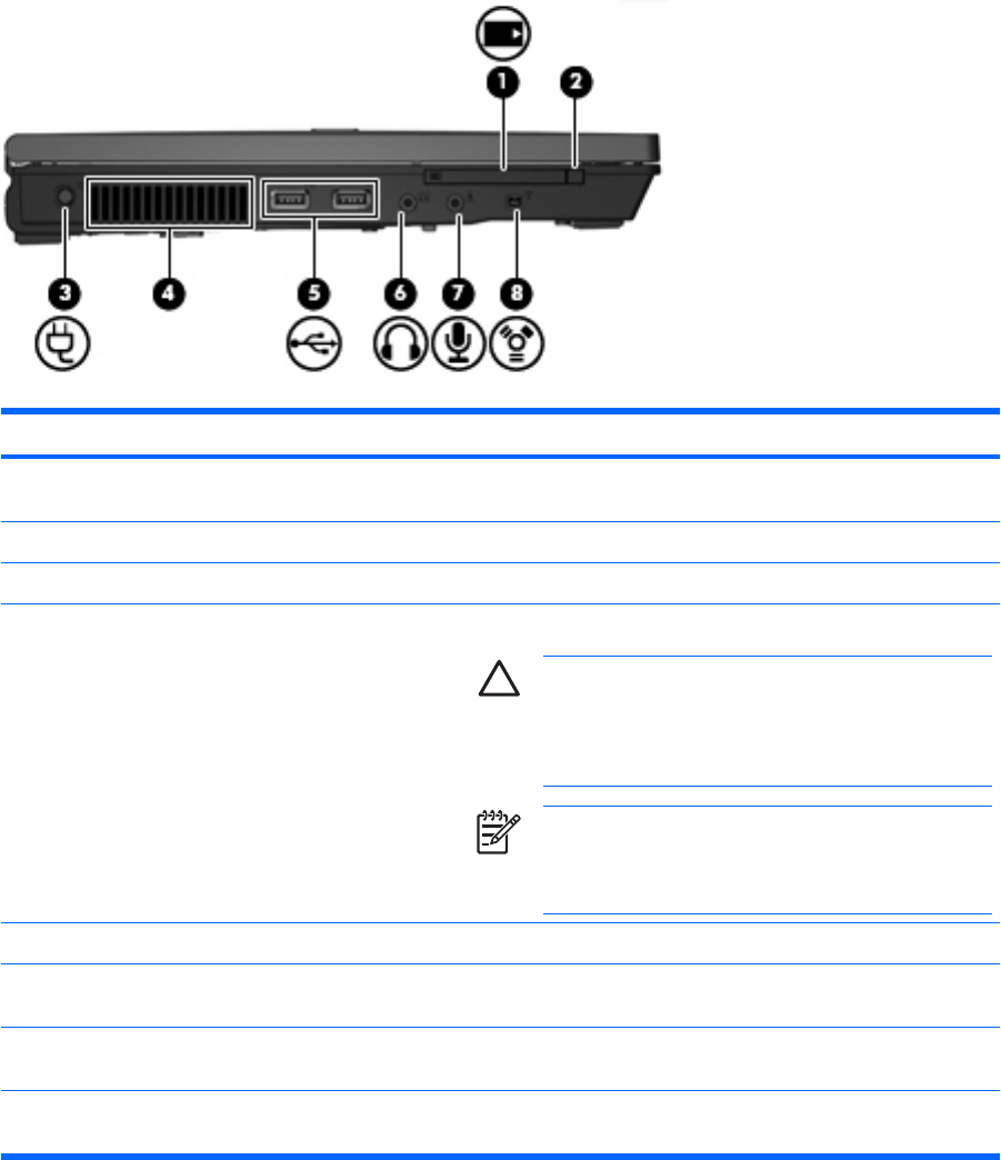 (1) TouchPad* Moves the pointer and selects or activates items on the screen.