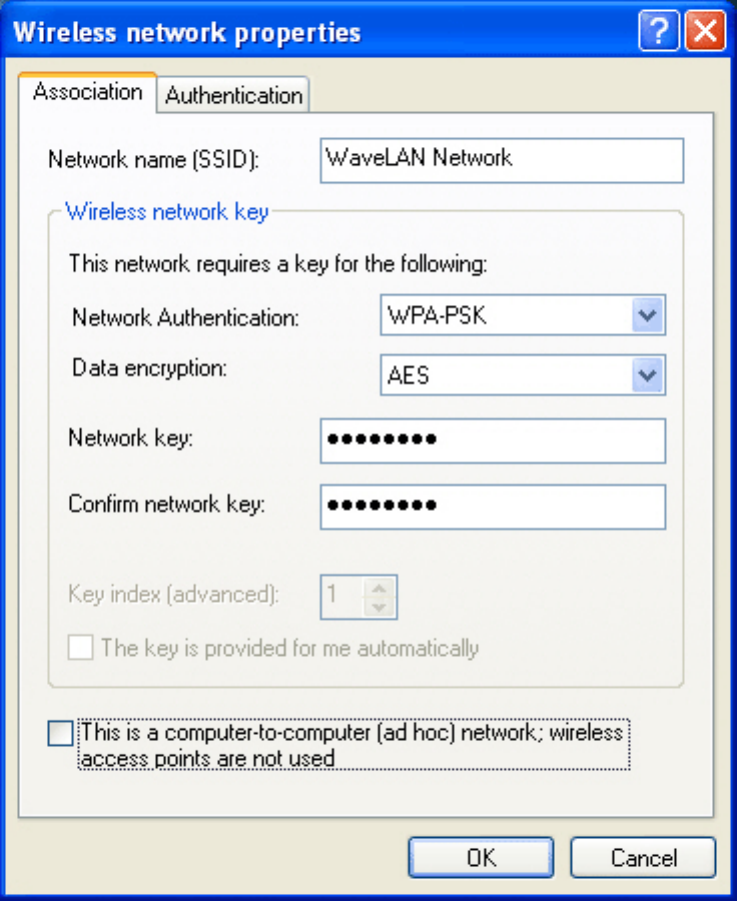 5. Type the network key in the Network key box and again in the Confirm network key box.