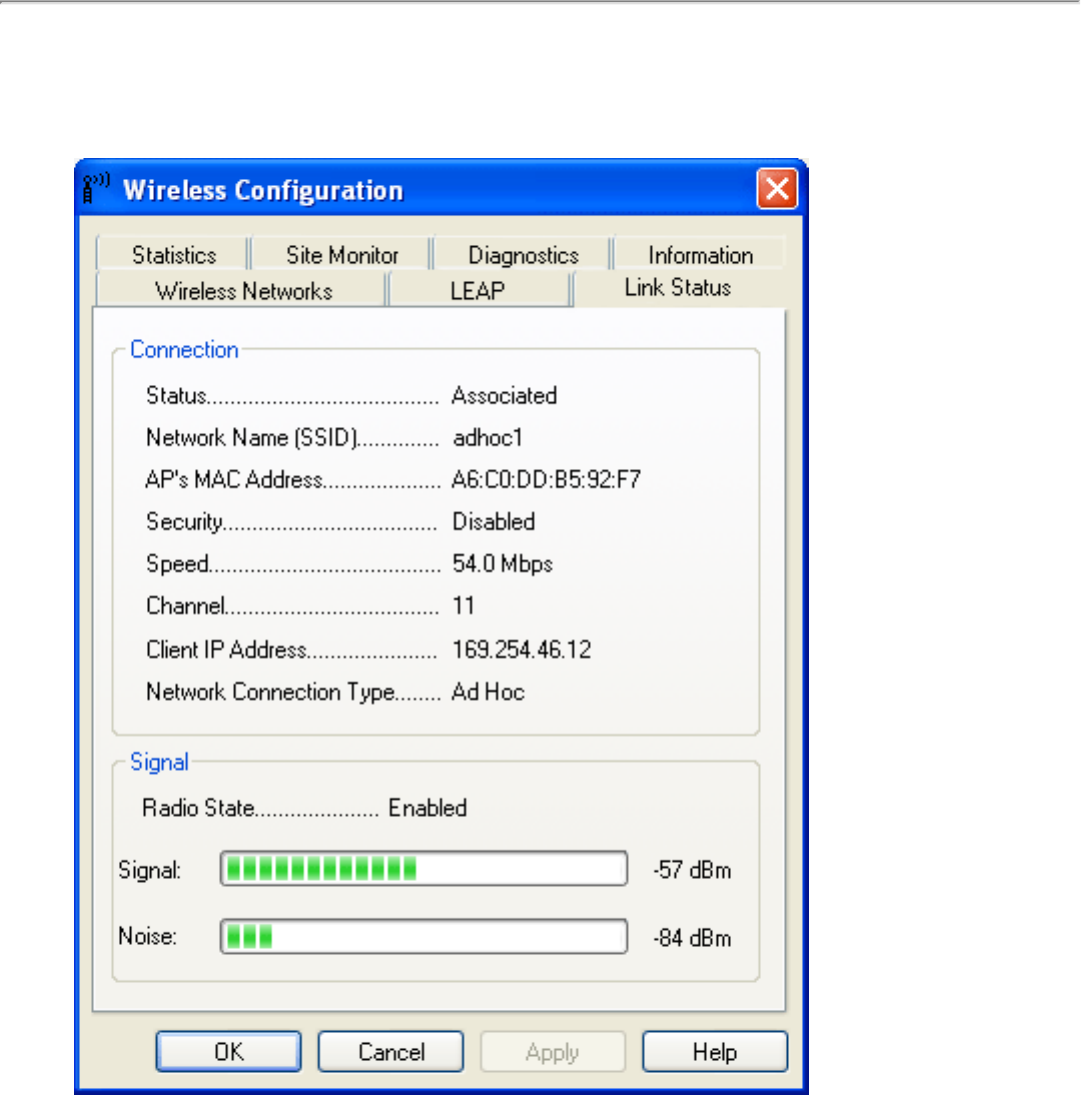 3. Click OK to activate the network connection. To verify that the network connection has been made, reopen Wireless