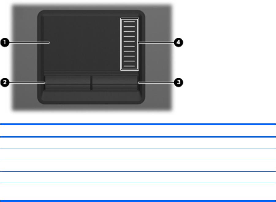(4) TouchPad scroll zone* Scrolls up or down.