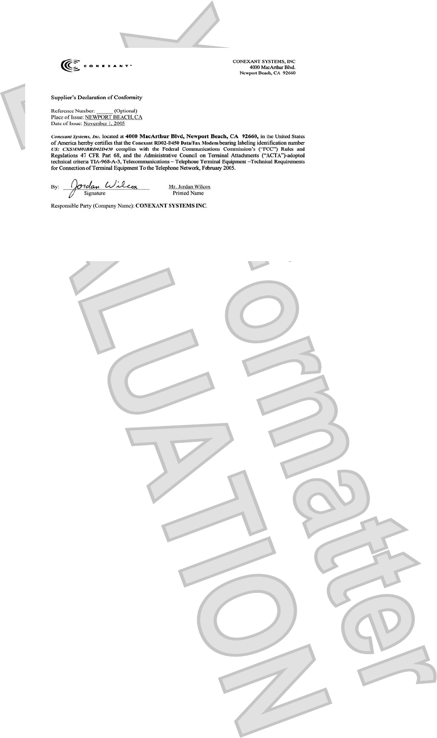 Broadcom Corporation 802.11g Wireless LAN PCI-E Mini Card Notebook Regulatory Guide