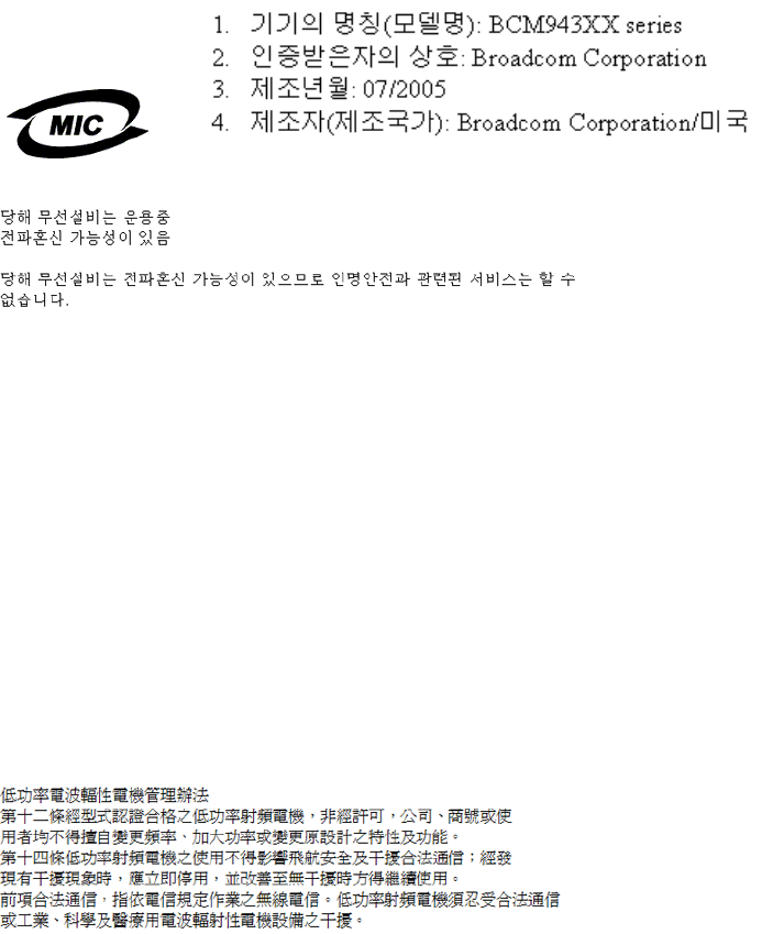 Broadcom BRCM1031 802.11ag/Draft 802.11n WLAN PCI-E Minicard User Manual Broadcom Reg UWB BTx