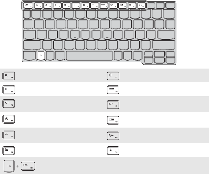You can access certain system settings quickly by pressing the appropriate function keys.