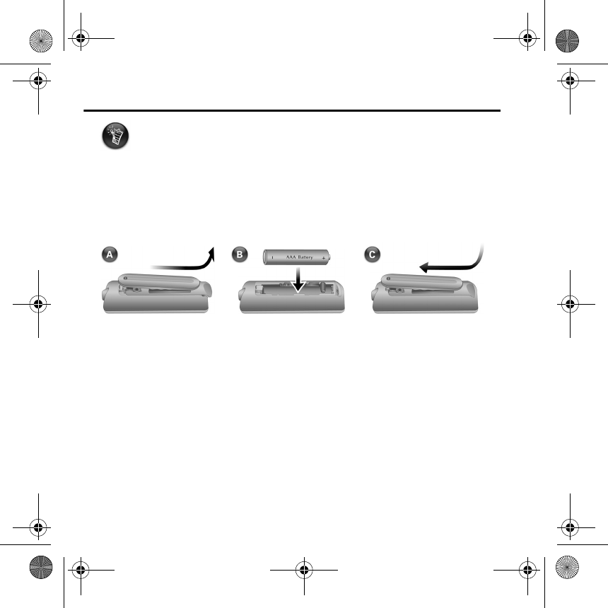 2. 마찬가지로 AAA 배터리를 오디오 송신기의 배터리 수납부에 넣습니다 .